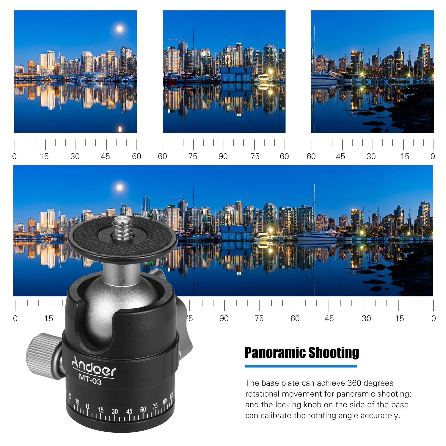 Базовая пластина обеспечивает вращение на 360 градусов для панорамной съемки; Ручка блокировки сбоку основания может точно откалибровать угол поворота.