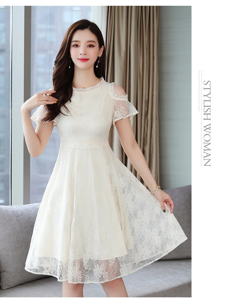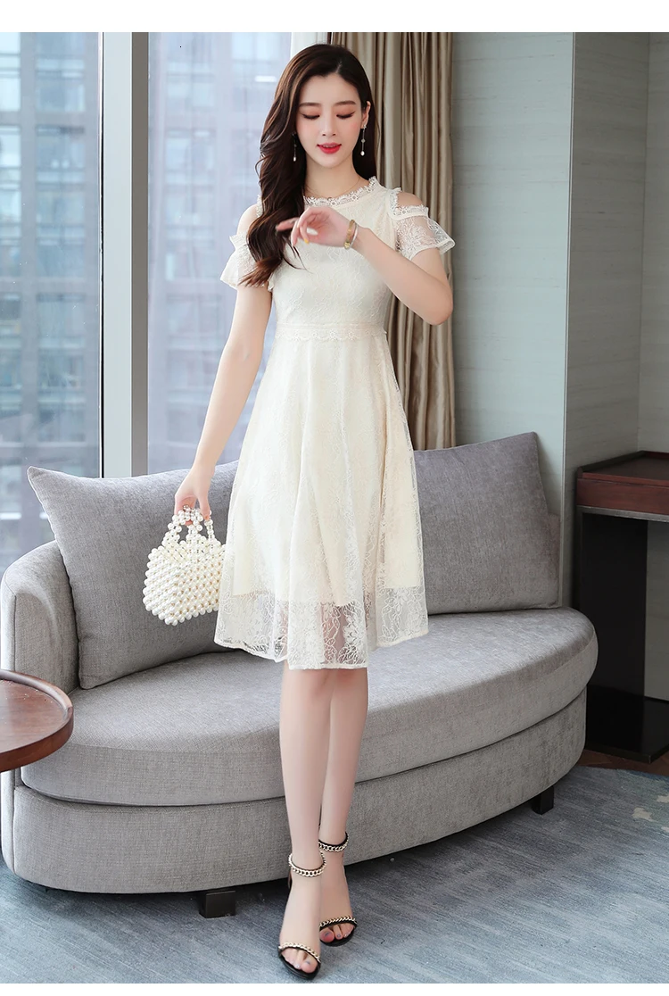 Новое поступление 2019, корейское летнее платье, белое кружевное сексуальное солнечное пляжное платье