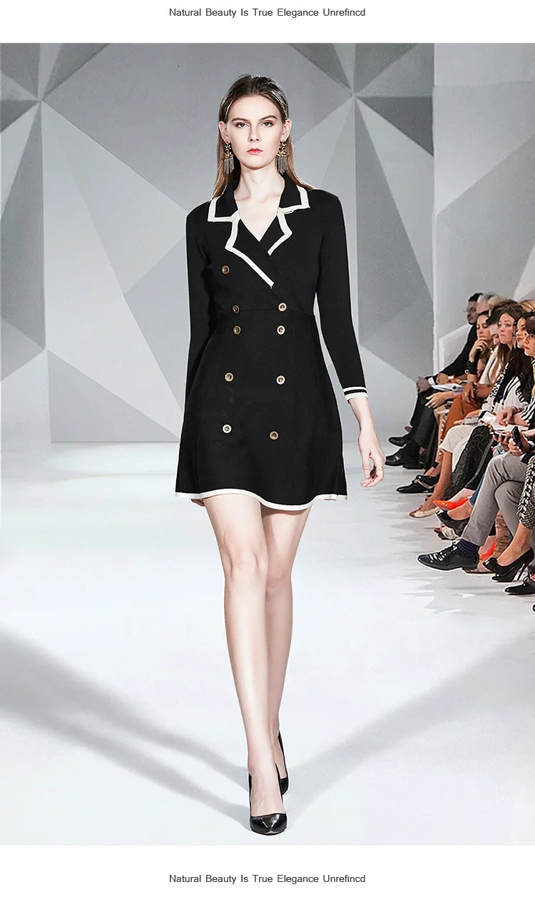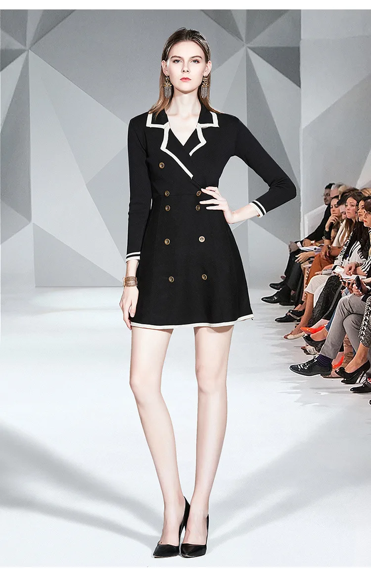 Осенний свитер, ТРАПЕЦИЕВИДНОЕ трикотажное платье, женское Повседневное платье с длинным рукавом и v-образным вырезом, рабочая одежда, мини-платье, элегантное черное офисное платье