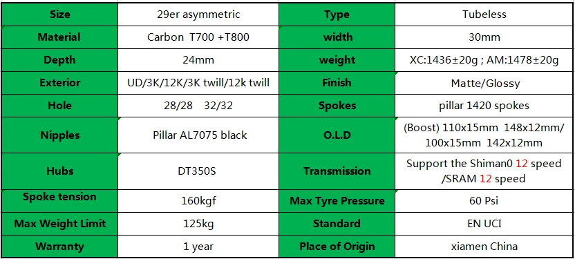 Go-zone 29er mountain disc carbon wheels asymmetric xc/am 30x24mm tubeless rodas mtb 29 DT350S shiman0 / XD 12 speed mtb wheelset pillar 1420 spokes