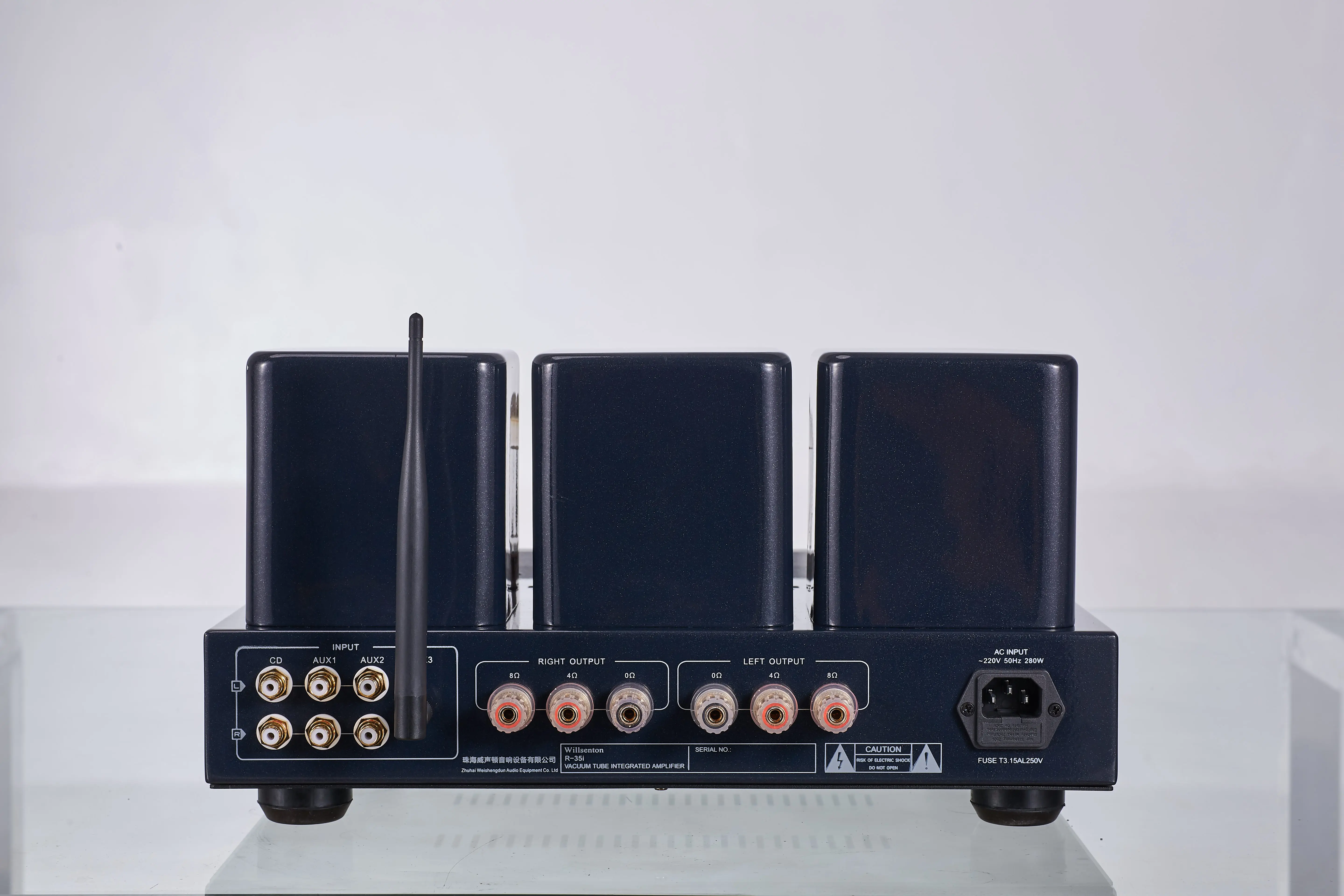 Технические параметры: [Номинальная выходная мощность]:20 Вт + 20 Вт (рабочее состояние RMS triode)35 Вт + 35 Вт (RMS супер линейное рабочее состояние)[Частотная характеристика машины]: 10 Гц ~ 40 кГц[Общее гармоническое искажение]: 1% (1 кГц)[Отношение сигнал-шум]: 90 дБ[Входная чувствительность]: 260 мВ[Входное сопротивление]: 100 кОм[Выходное сопротивление]: 4Ω, 8Ω[Импеданс выхода уха]: 30 Ω 300 ΩНапряжение источника питания: от 100 В до 240 В переменного тока 60 Гц/50 Гц (100 в и 240 В для заказа требуется 3-14 рабочих дней). 110 В, 115 В, 120 В, 220 В и 240 В версия в наличии. (Есть переключатель напряжения 230 В/115 в внутри корпуса) Потребляемая мощность: 280 Вт[Размер машины] (ШxДxВ): (396X340X200) мм[С помощью вакуумной трубки]: EL34X4, 12AU7X2, 12AX7X2[Вес нетто]: 18 кг[Вес брутто]: 21 кг[Потребляемая Мощность всей машины]: 260 ВтВерсия Bluetooth:[Чип Bluetooth]: CSR8635[Характеристики Bluetooth]: BLUTOOTHV4.0[Поддержка протокола Bluetooth]: HFPV1.6, HSPV1.2, A2DPV1.2, AVRCPV1.4[Аудио производительность]: поддержка AAC, MP3, SBC, стерео[Расстояние передачи]: допустимый диапазон 10 метровРабочее состояние: температура: 0 ℃ ~ 40 ℃ Влажность: 20% ~ 80%Состояние хранения: температура: -20 ℃ ~ 70 ℃ Влажность: 20% ~ 90%