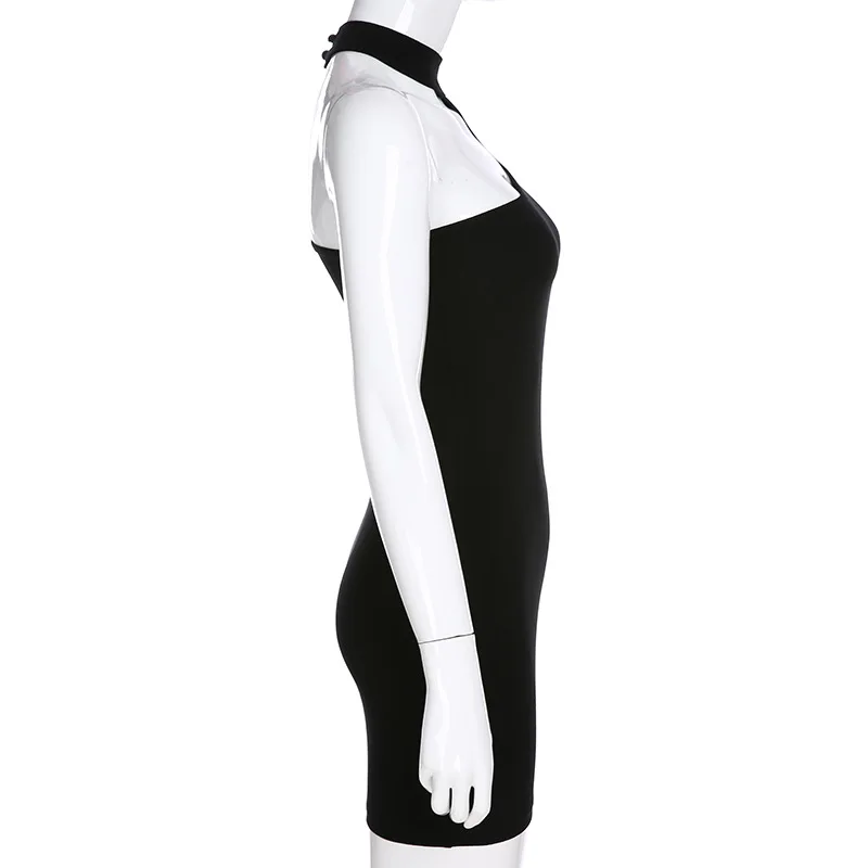 Женское однобортное платье с лямкой на шее однотонное в полоску леопардовым