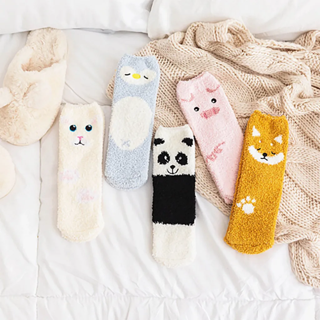 5 пар, мягкие чулки для женщин и девочек с вышивкой в виде персонажей мультфильмов для сна