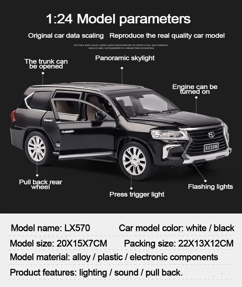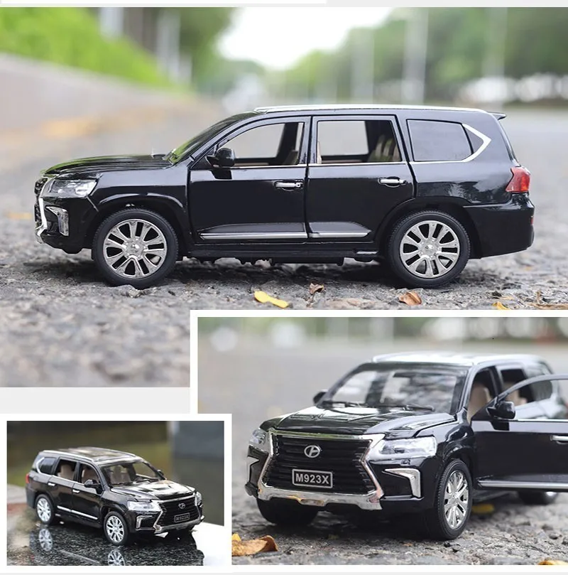 1/24 литье под давлением модель автомобиля сплав Land Cruiser SUV LX570 внедорожный Транспорт со звуковым светильник функция вытяжки игрушки для мальчика подарки