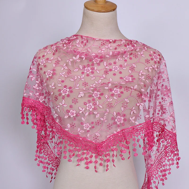 Женское кружевное Прозрачное цветочное украшение Шарф, шаль, шарф с кисточками
