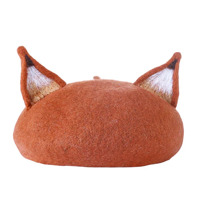 Женский шерстяной фетровый берет с ушками для кошек, милая теплая шапка для художника, Рождественская Зимняя шерстяная фетровая шапка NGD88