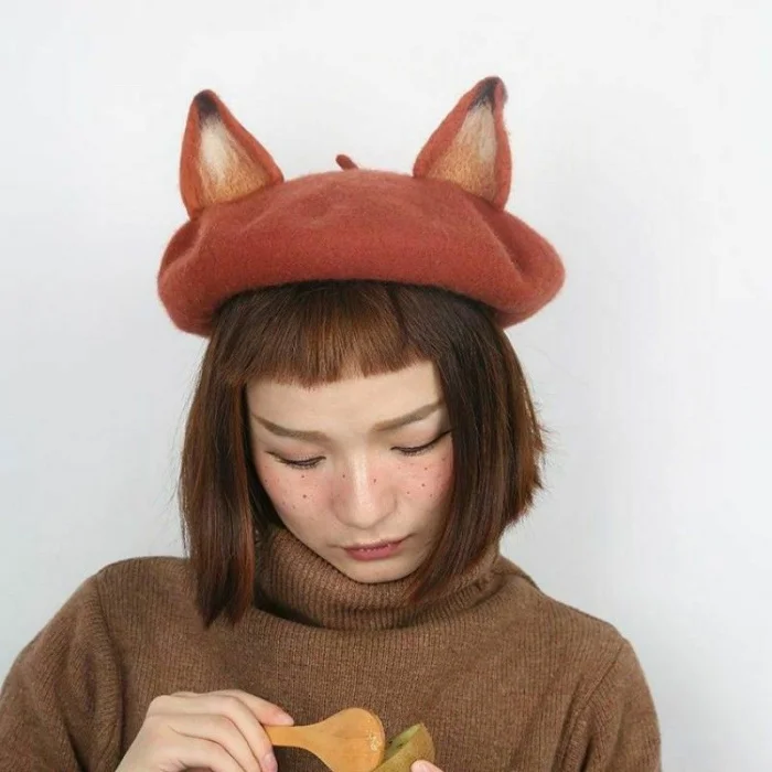 Название: Женские шапки с ушками котов, милая шерстяная Повседневная теплая шапка художника