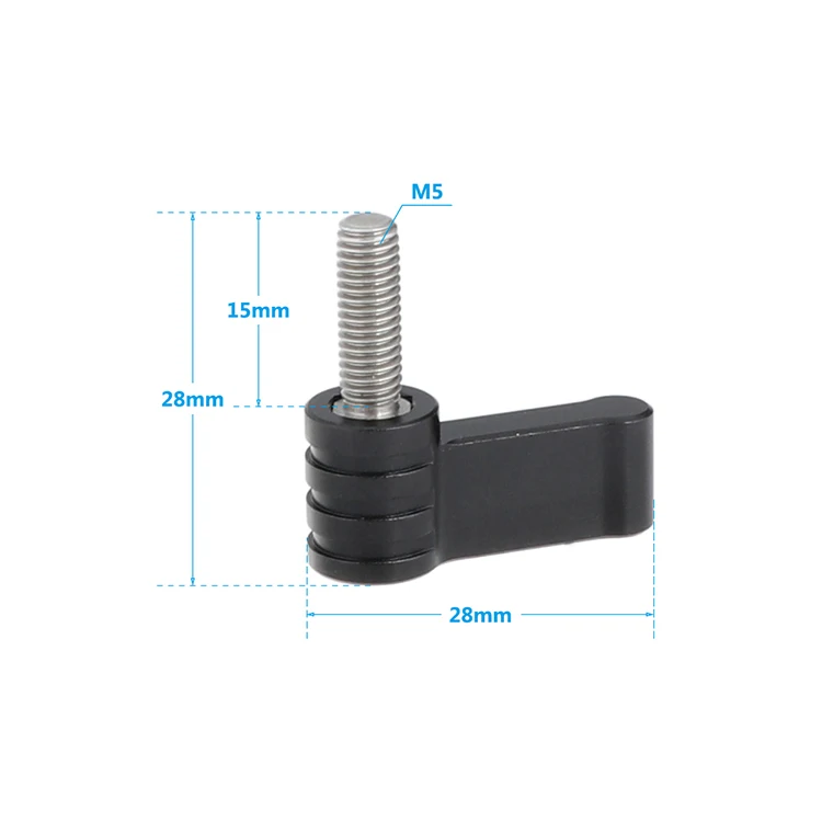 The Rotating Knob is made of aluminum by CNC machine. The specification of threaded part is M5* 15mm with djustable design. Compatible with 15mm rod clamp, rod clamp with 1/4" mount, DSLR handle grip with 15mm rod clamp, Rod Clamp Extender Riser Rail Block, and all standard M5 thread holes accessories, such as camera rig, cage, QR plate, shoulder support, and so on. Package Include: 2 x M5 Rotating Knob Adjustable Thumb Lever Screw