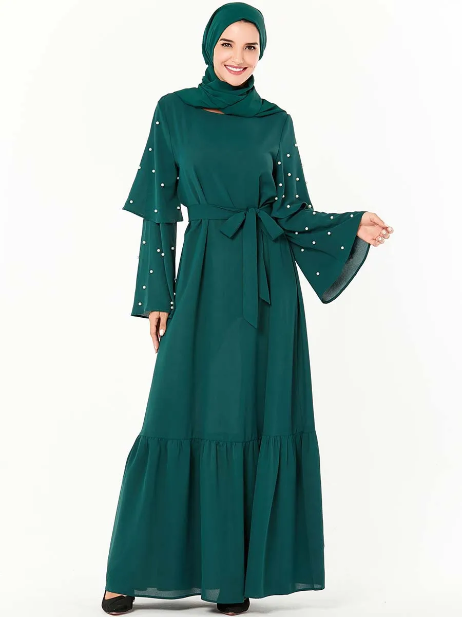 Для женщин Абаи мусульманская одежда для Дубай Костюмы шифоновое Бандажное
