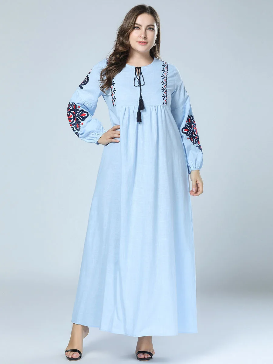 Мусульманская женская одежда больших размеров 4XL с длинным рукавом синим принтом