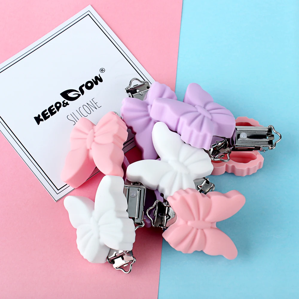Keep & Grow 3 шт. детские соски с зажимами бабочка Силиконовые Прорезыватели BPA Бесплатно Детские Прорезыватели для кормления соски аксессуары для цепи