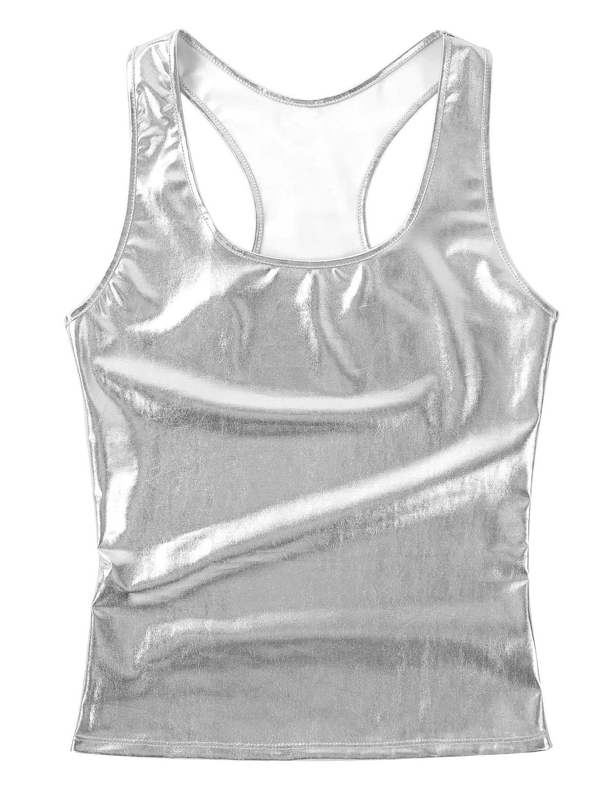 Женский Блестящий металлический камзол жилет топы безрукавки, один размер подходит для большинства.