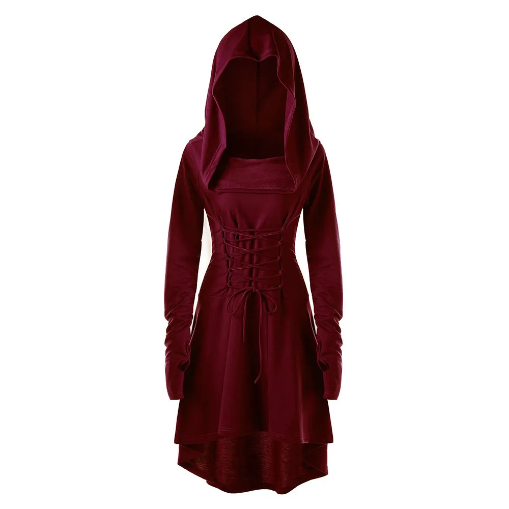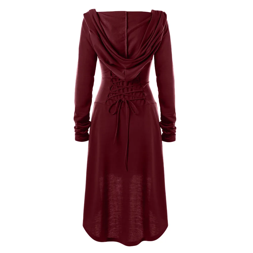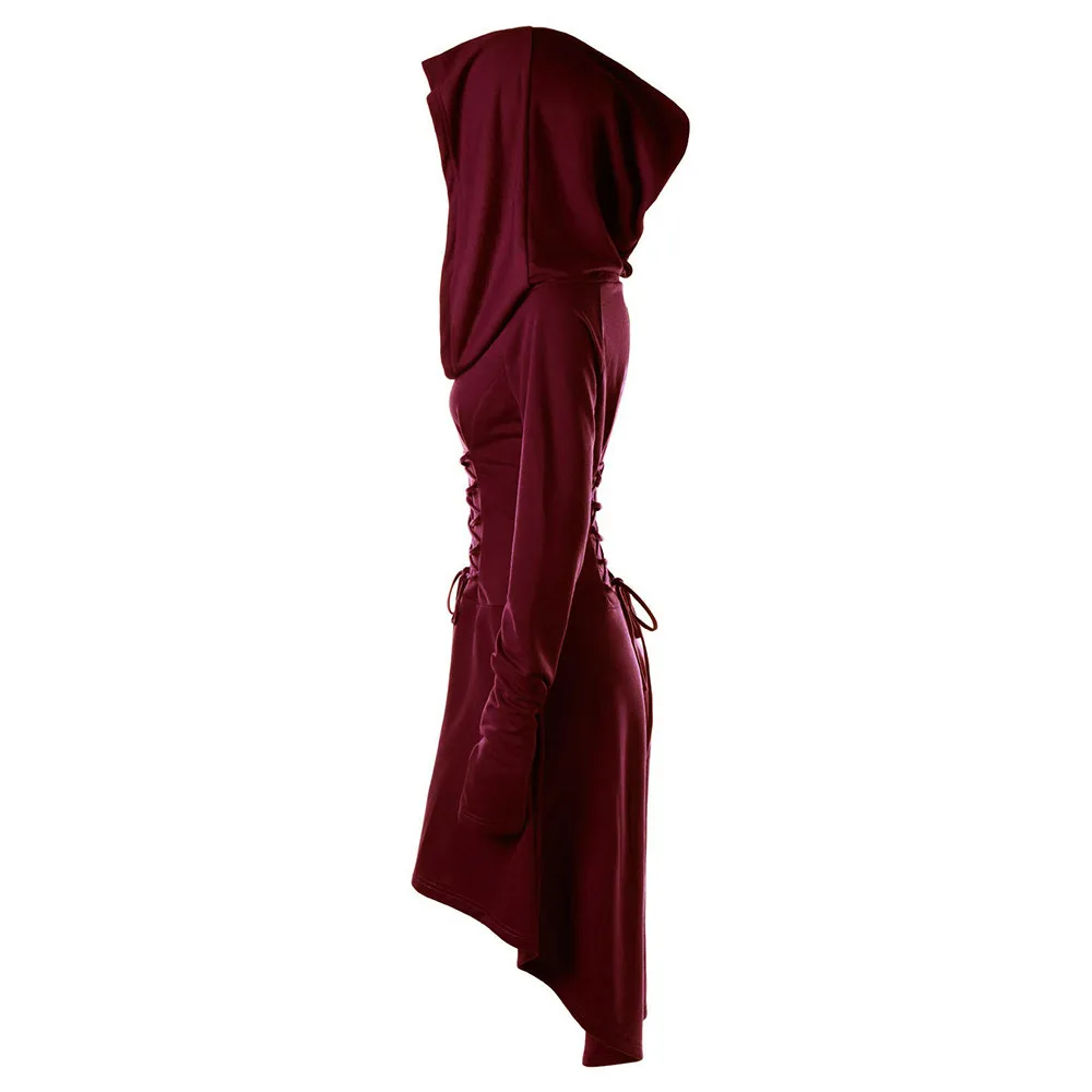 Костюмы на шнуровке с капюшоном винтажный пуловер Высокая Низкая повязка длинное платье плащ
