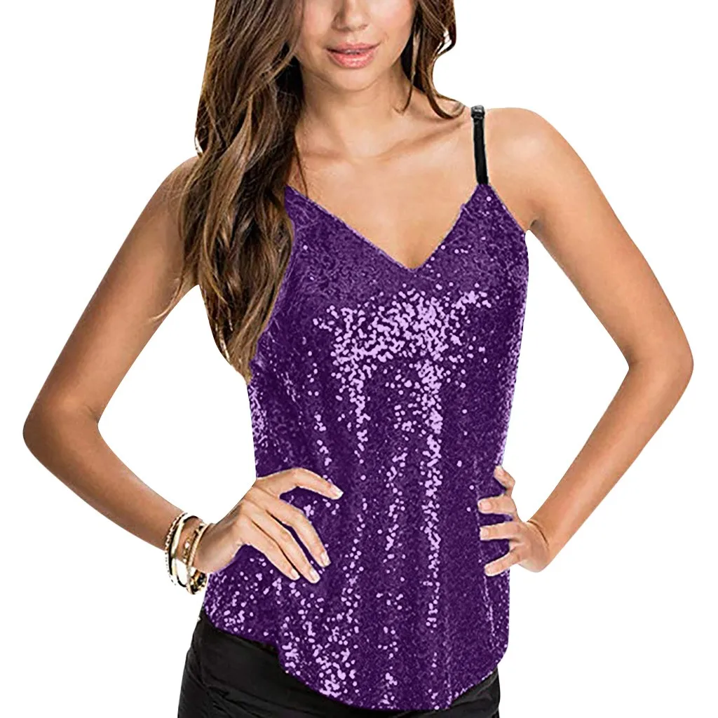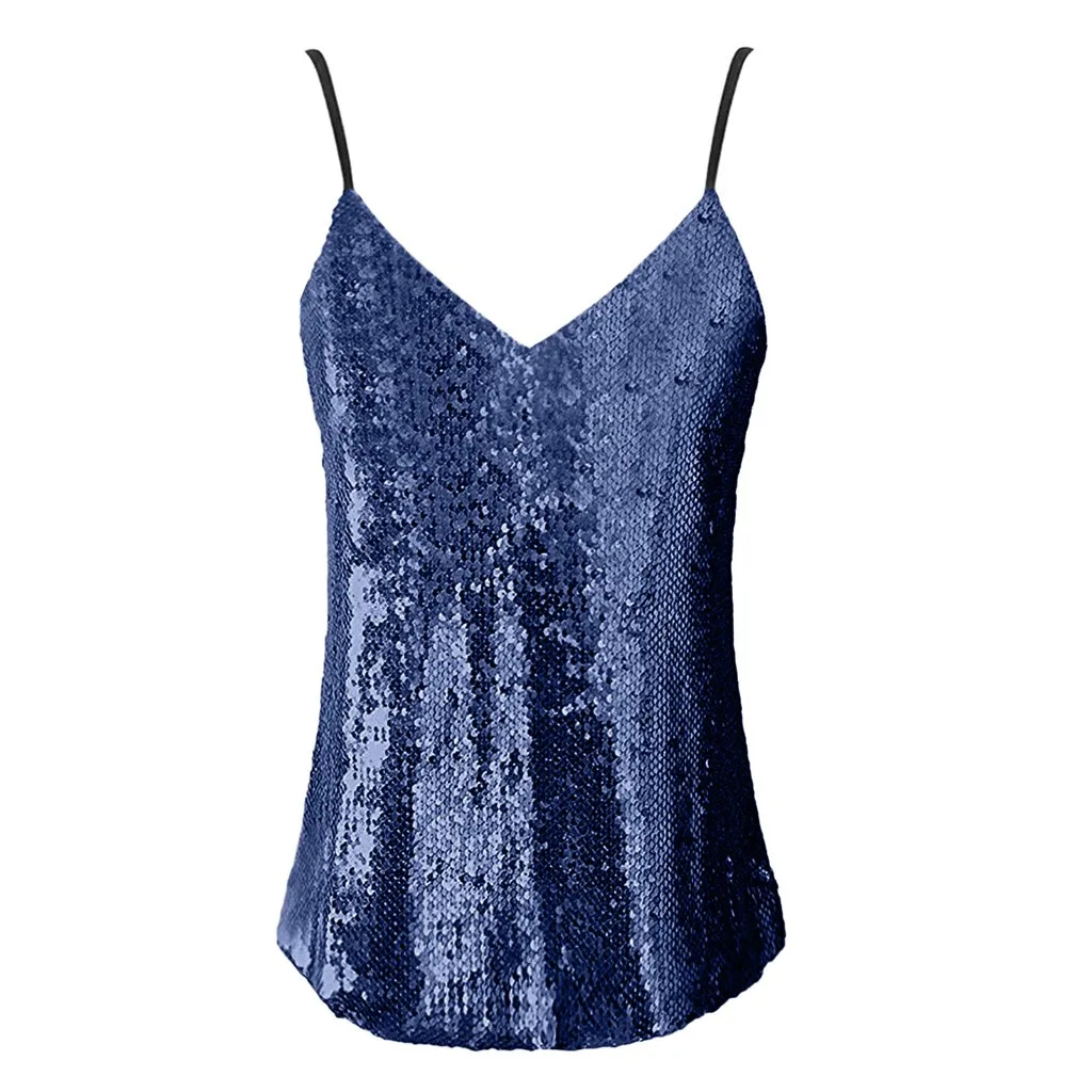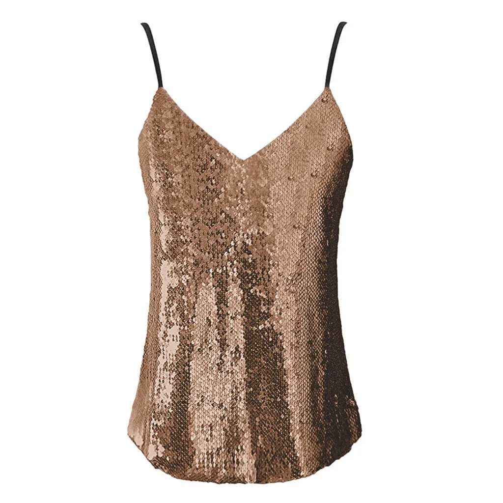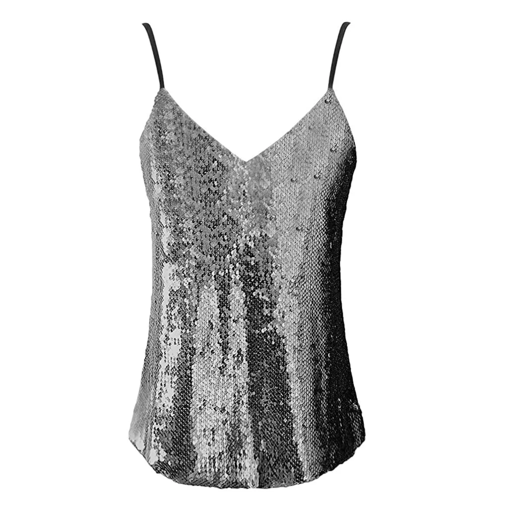 Женская Сексуальная Блузка без рукавов с блестками и v-образным вырезом Танк Топ Футболка