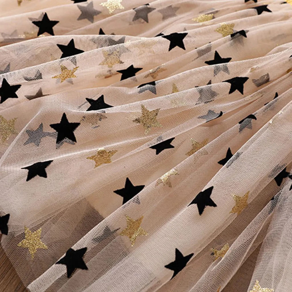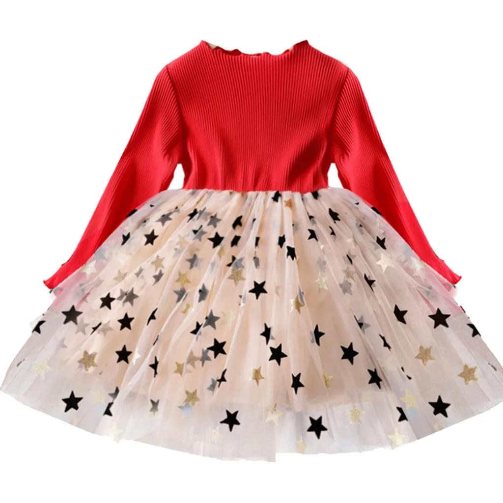 Фатиновое платье для маленьких девочек с длинными рукавами, рюшами, блестками и принтом со звездой, одежда