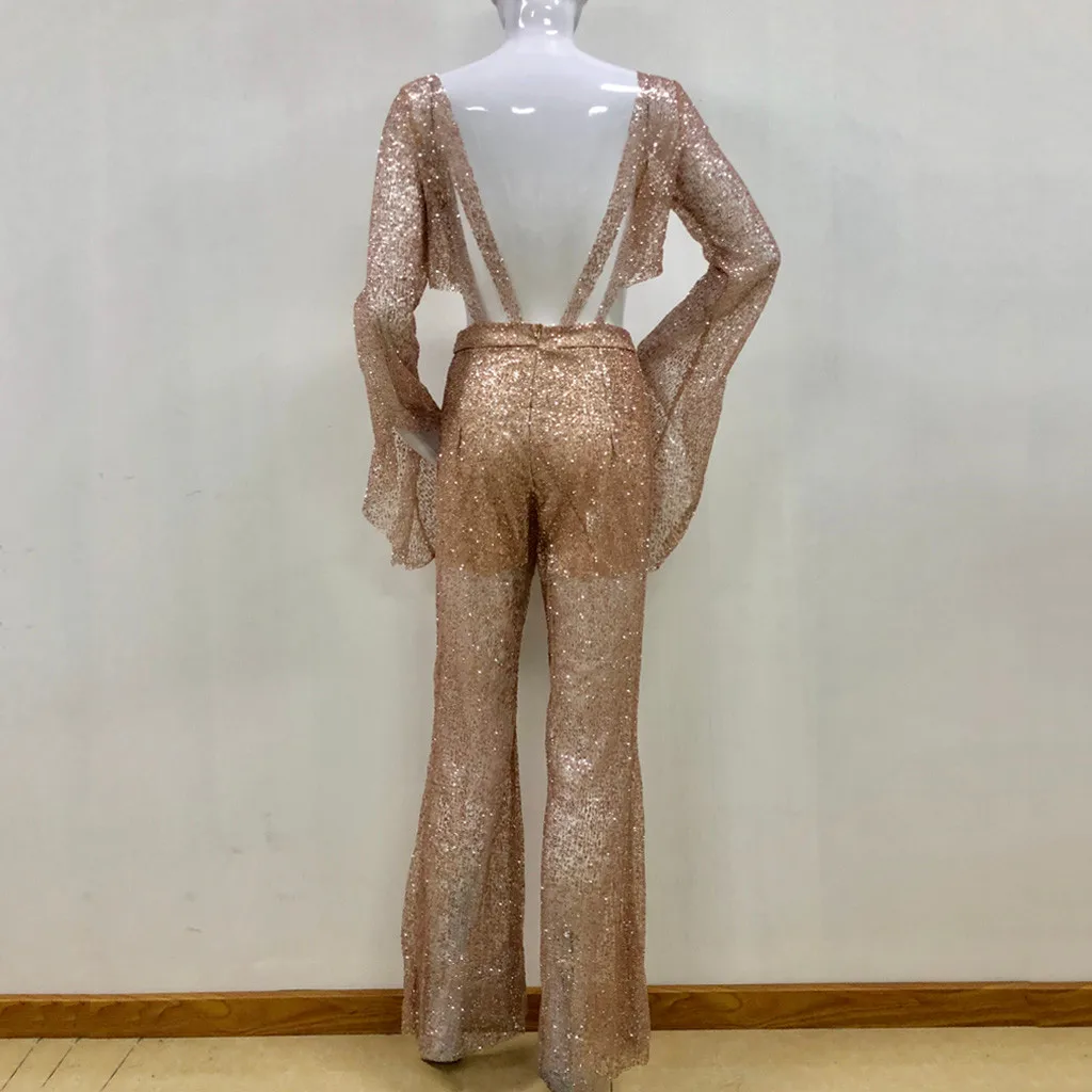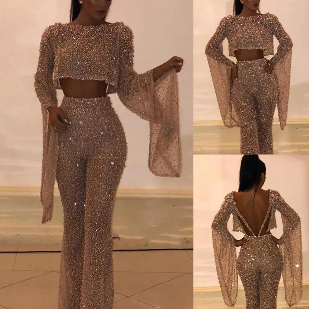 Модный женский укороченный комбинезон с блестками и рукавами «летучая мышь» для ночного клуба и вечеринки
