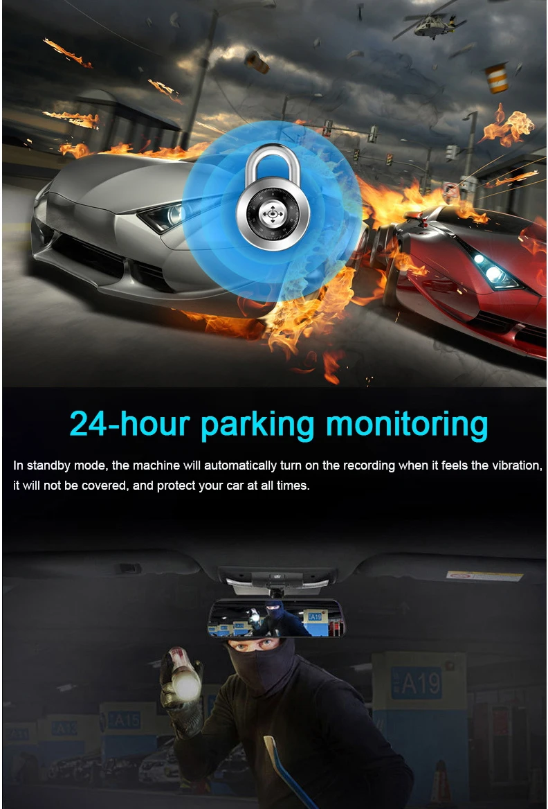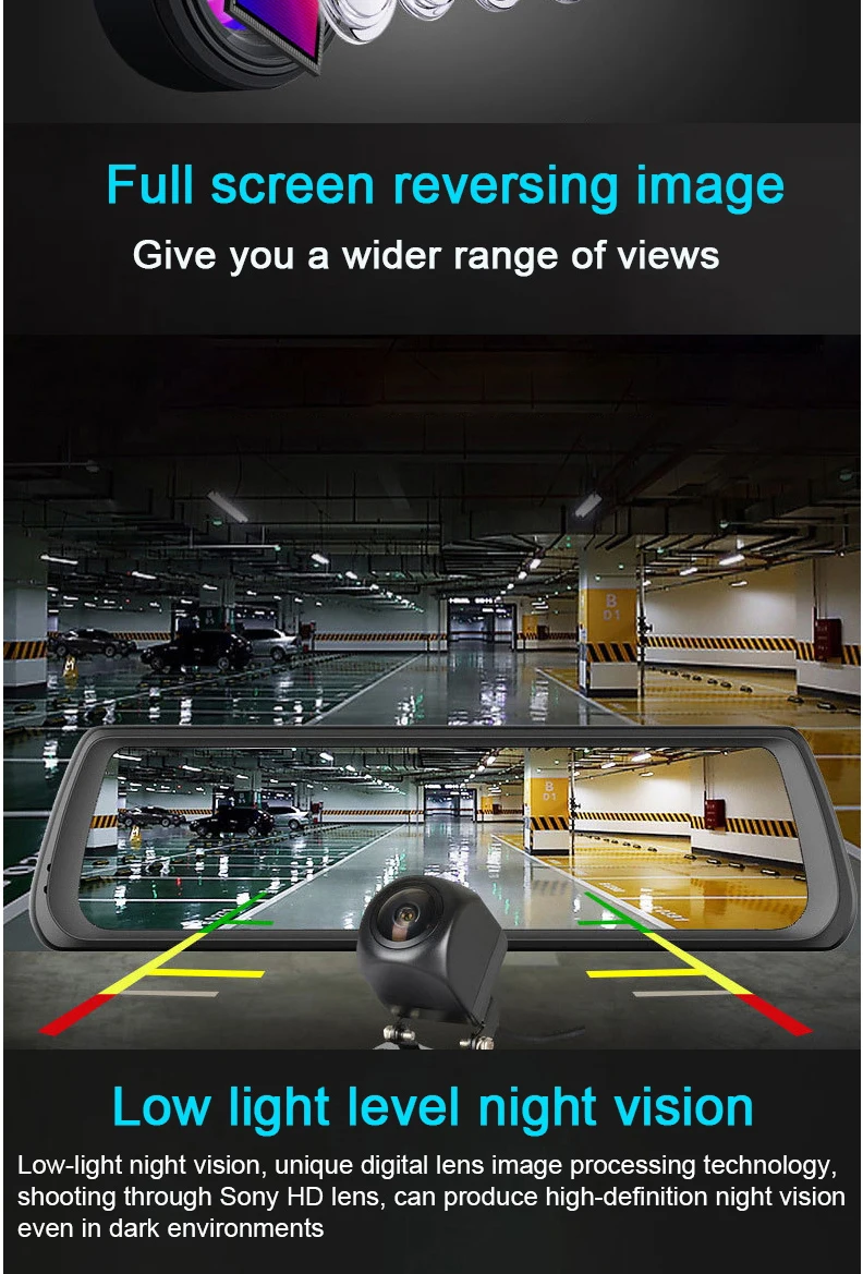 Автомобильный видеорегистратор с двойным объективом 10 0 дюймов Full HD 1080P зеркало