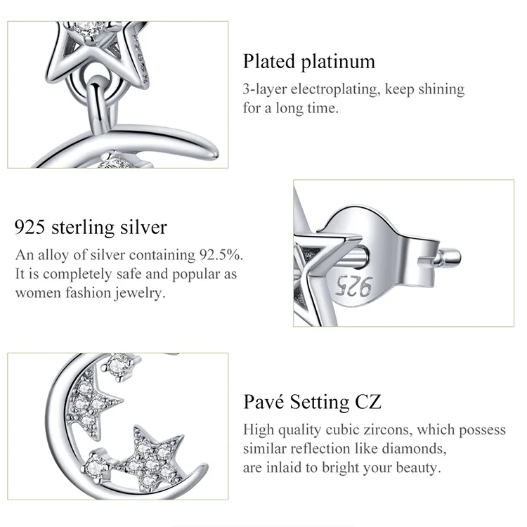 Материал: S925 + покрытая платиной + паве установка CZ Размер: 1,9*1 см, размер: 0,6*0,6 см Описание: Креативные и интересные Асимметричные в форме Луны с ярким цирконием-это дизайн для красавицы, которая любит моду и красоту от дизайнера.