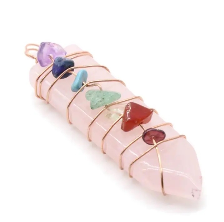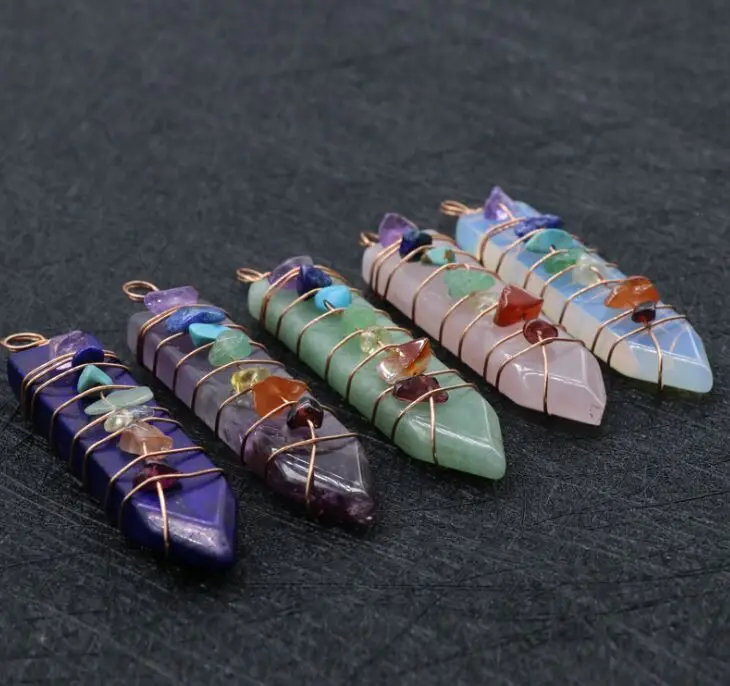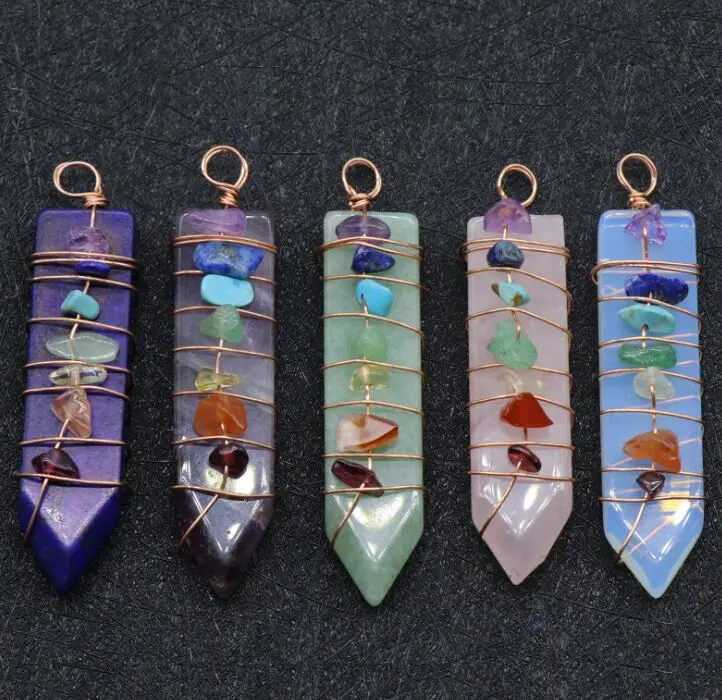 7 чакральную исцеления Радуга ожерелья с подвеской из натурального камня Шарм Медный провод в оболочке кулона для ожерелья ювелирных изделий