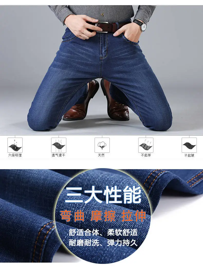Сезон весна лето Джинсы для мужчин с большим голубым Размеры 44 46 48 140 кг джинсы