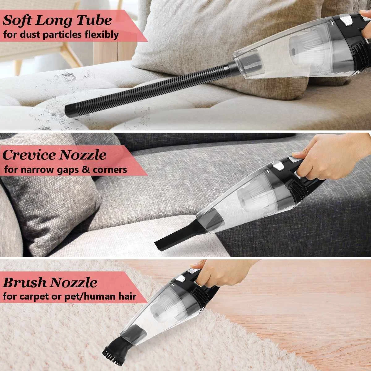【Портативный беспроводной ручной пылесос-это легкий и эргономичный дизайн, который поможет вам избежать усталости. Вы можете легко и быстро забрать пыль, волосы домашних животных вашего автомобиля и кухни.