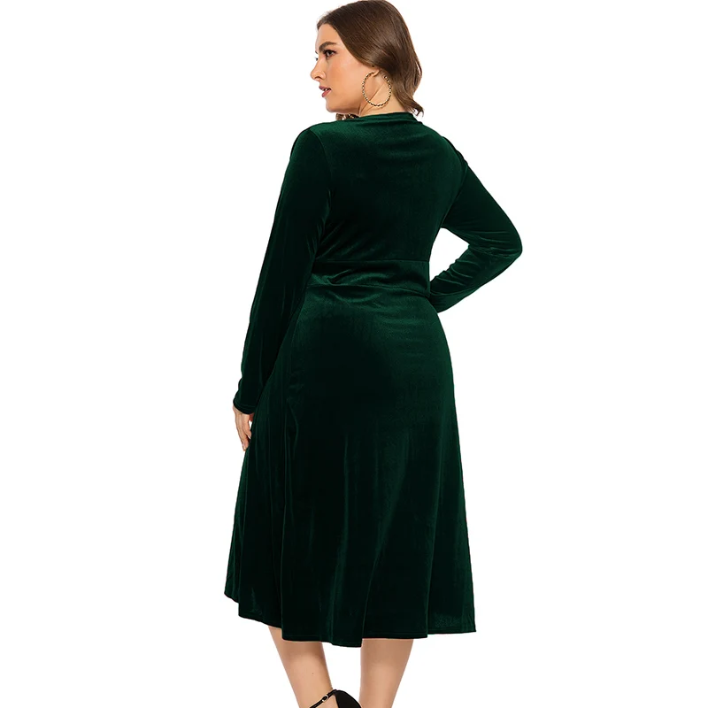 Это женственное платье миди-это то, что подходит для коктейльных вечеринок или свиданий. Изделие изготовлено из плюшевого бархата и имеет драпированный подол. Ваш стиль на высоком каблуке.