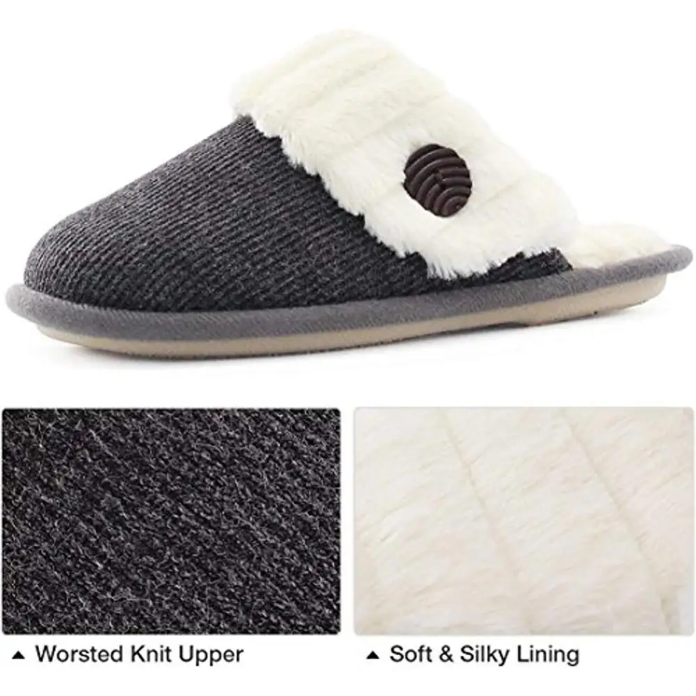 1. Стильные и удобные: вязаные вамперы с украшением в виде пуговиц и отделка из искусственного меха добавляют элегантности, роскоши этим тапочкам. Красиво оформленный вид позволит вам чувствовать себя стильно и комфортно.
