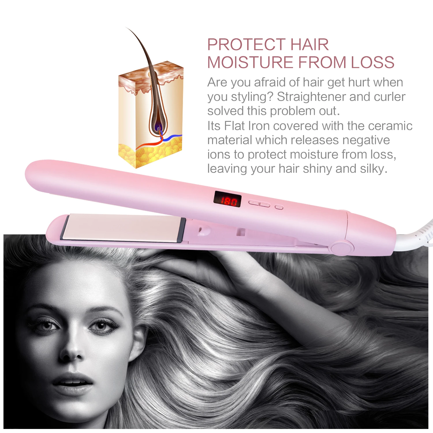 Напряжение: 110-240 В Частота: 50/60 Гц Мощность: 42 Вт Температура: PTC Материал теплового проводника: керамическое покрытие из алюминиевого сплава Диаметр теплопроводности: 20-30 мм Светодиодный 17 температурный контроль, 120-200 Длина шнура питания: около 1,8 м, вращение на 360 градусов. Конструкция замка безопасности, Автоматическое отключение питания в течение 60 минут