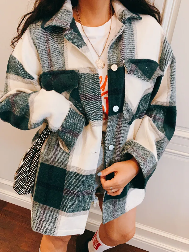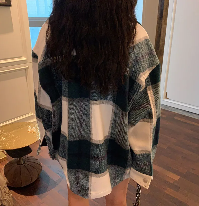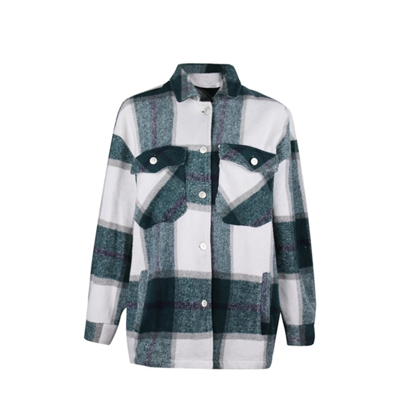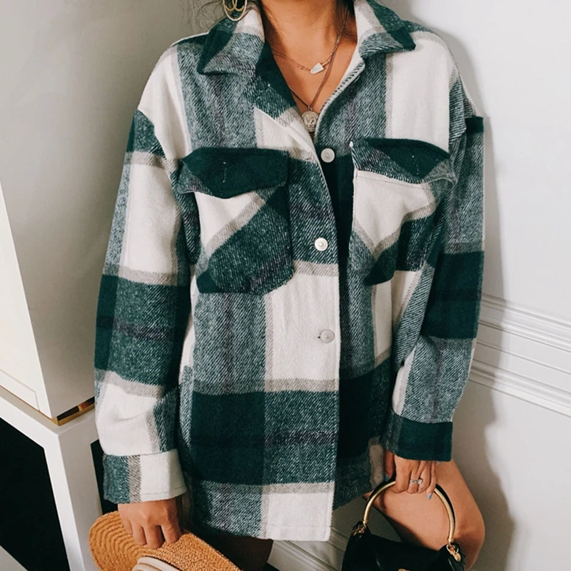 Большие размеры, Женские топы и блузки, Винтажный Зеленый Топ с длинным рукавом, длинная рубашка, корейская модная одежда, элегантная клетчатая рубашка для женщин