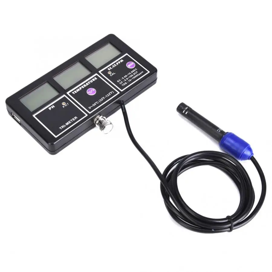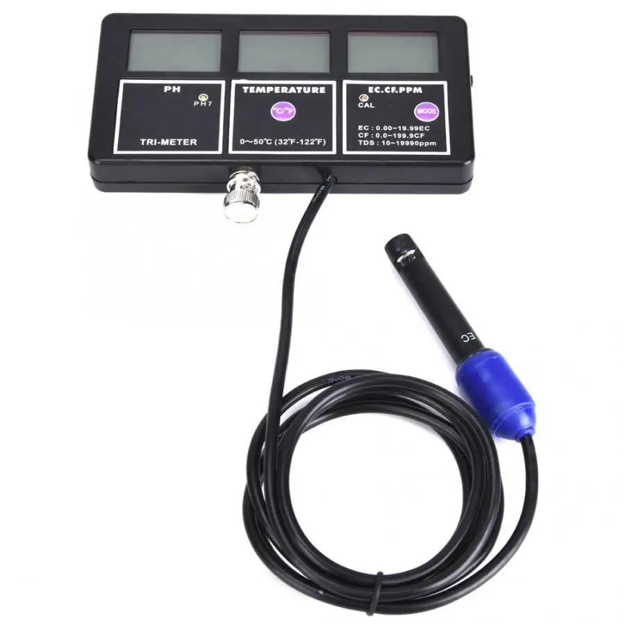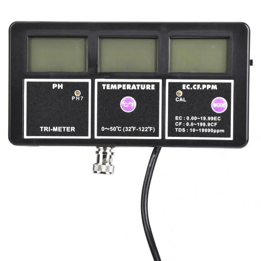 1. Три больших дисплея одновременно, могут одновременно контролировать ph, ° c, mv, ec, cf, TDS, полные функции, с высокой точностью.