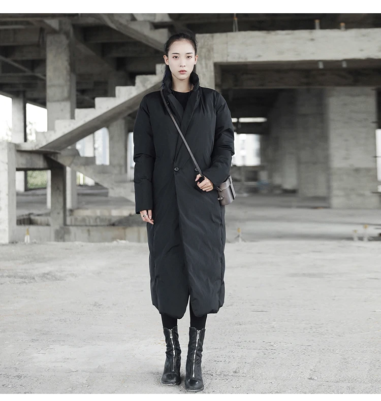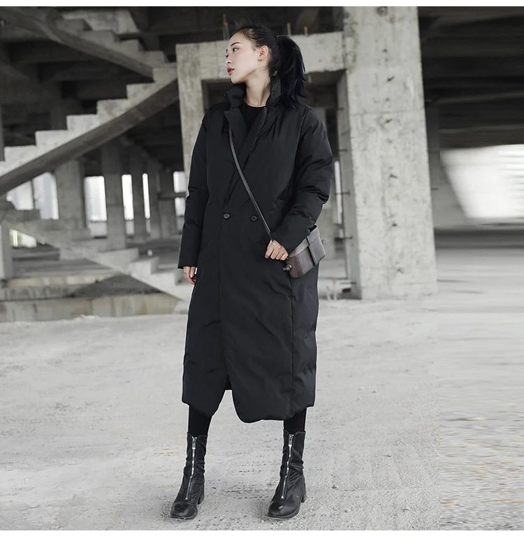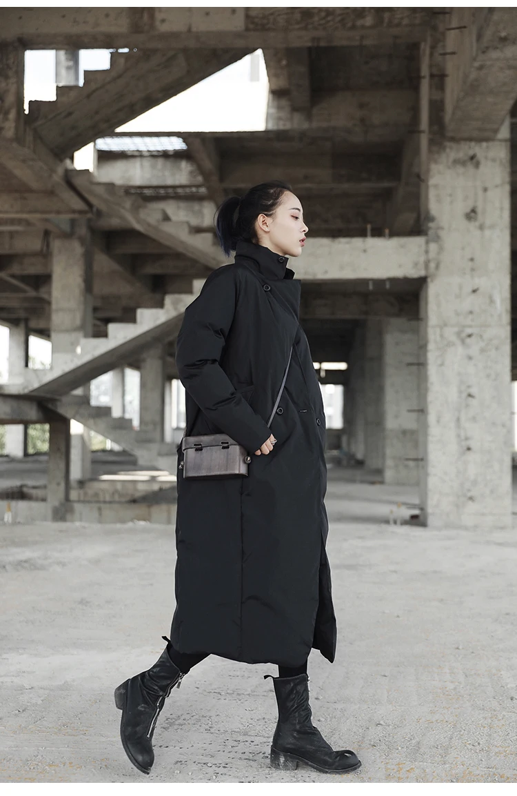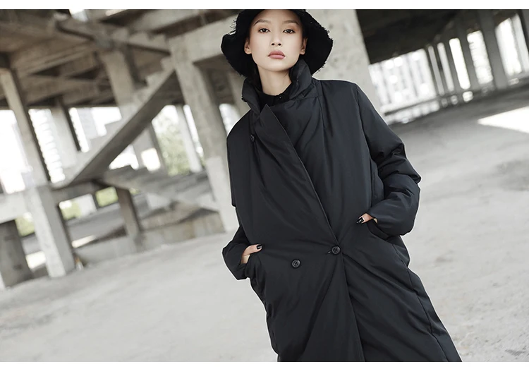 Новинка 2019, корейский стиль, женская черная парка, пальто, двубортное, теплая одежда, женская верхняя одежда, пальто, длинная куртка, Женская 1207C-53