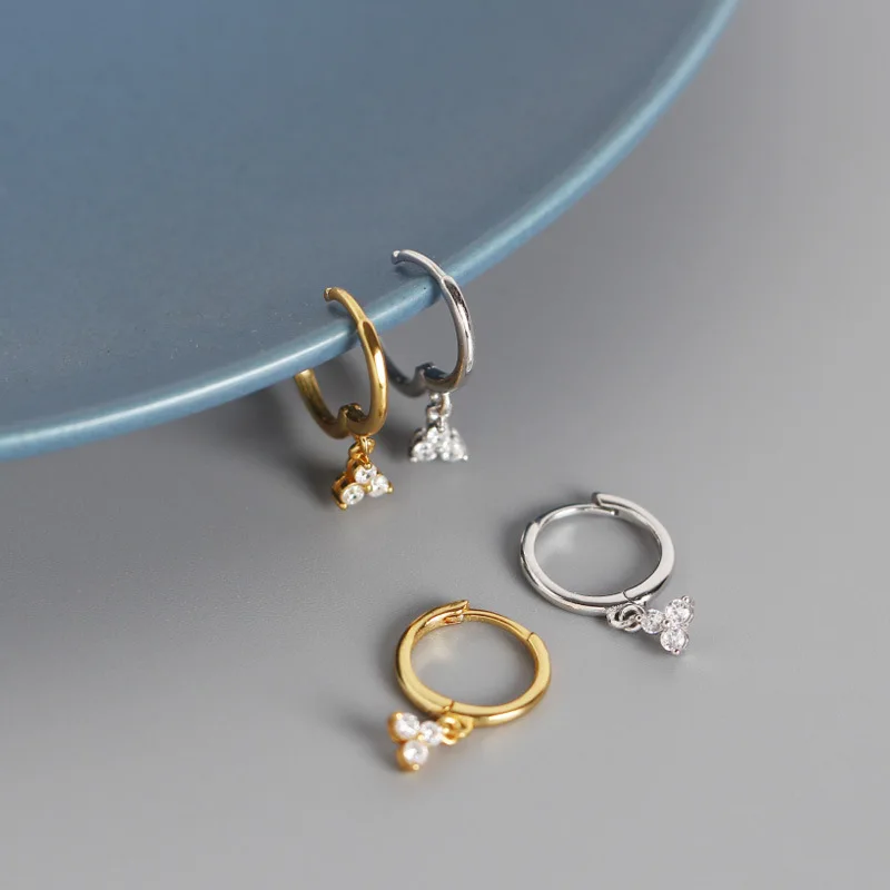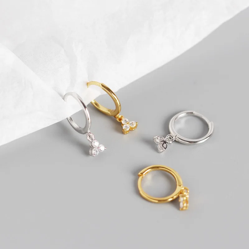 S925 Серебряный цвет персонализированные Серьги Геометрические три циркония модные серьги женские серьги банкет помолвка подарок на день рождения