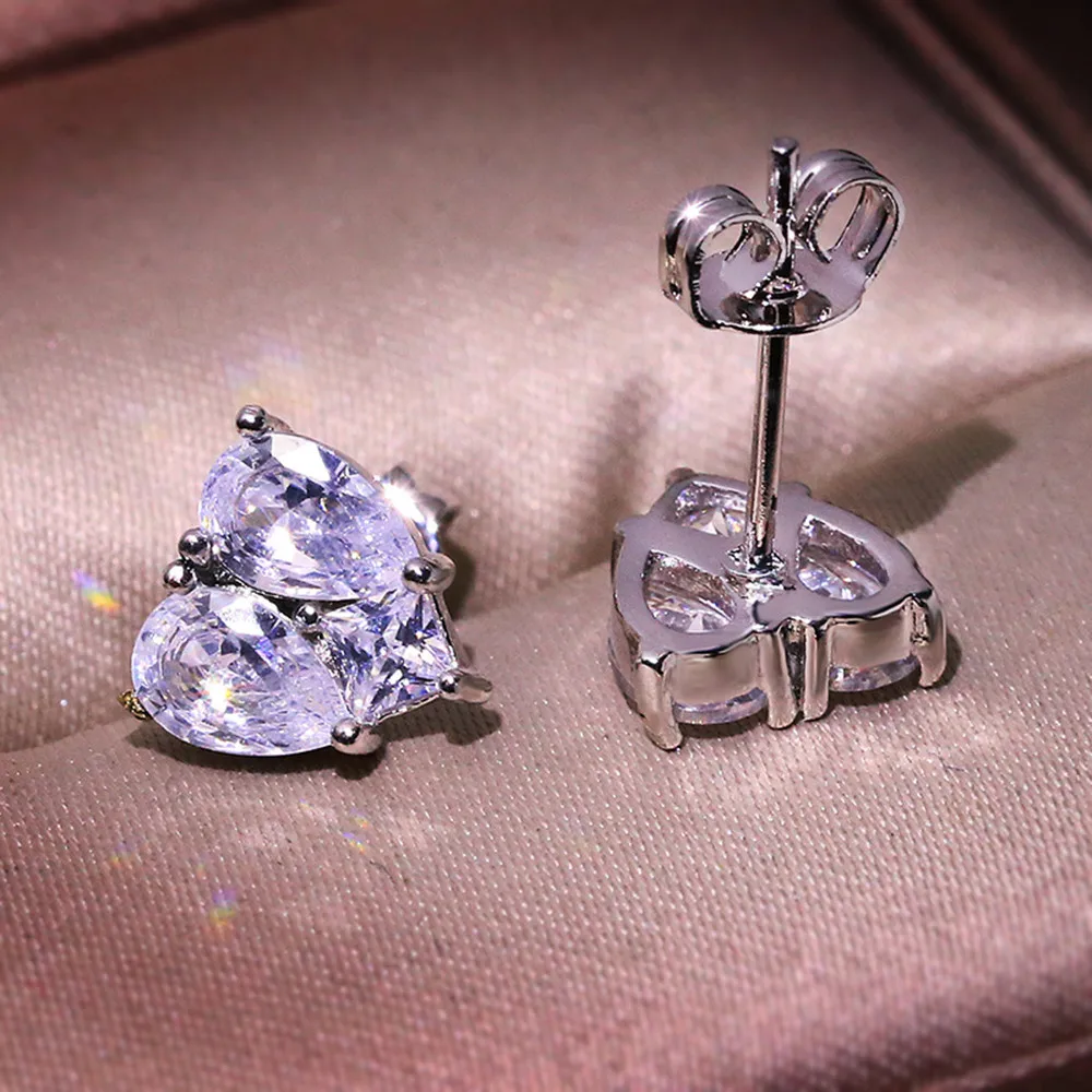 Супер Блестящий инкрустированные драгоценные камни женские серьги в форме сердца популярный милый стиль нержавеющая сталь steeTexture