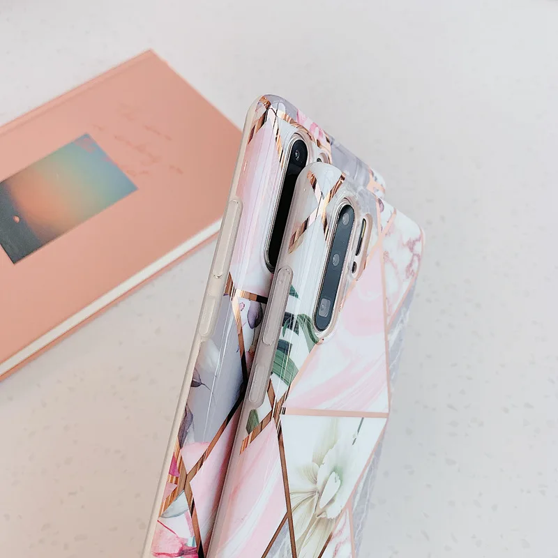 1.Модный чехол IMD из мягкого силикона с мраморным соединением геометрических линий и цветовЗадняя крышка