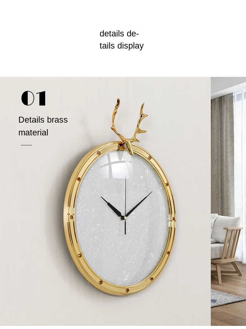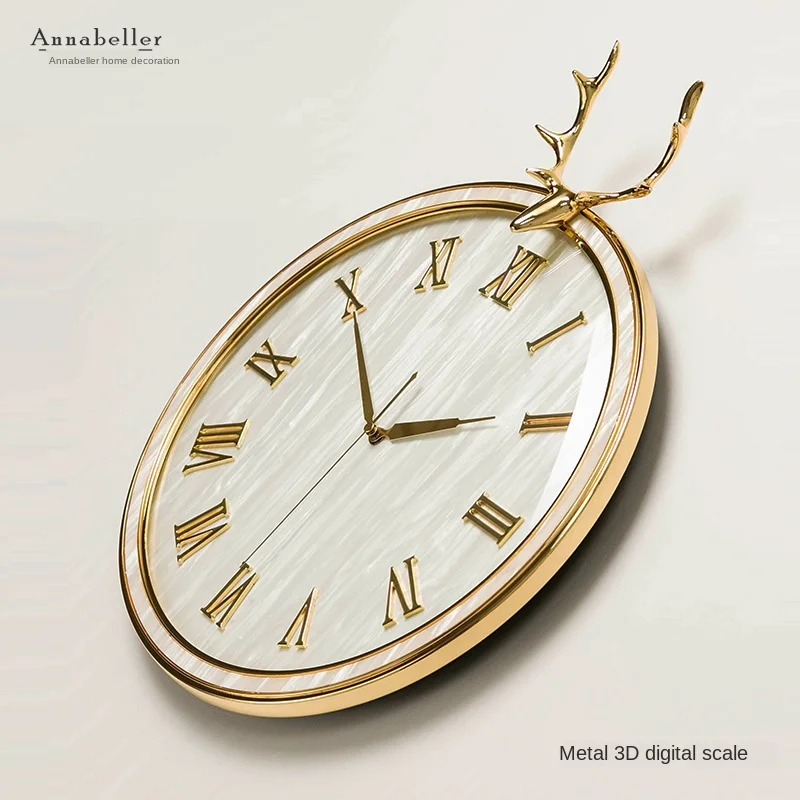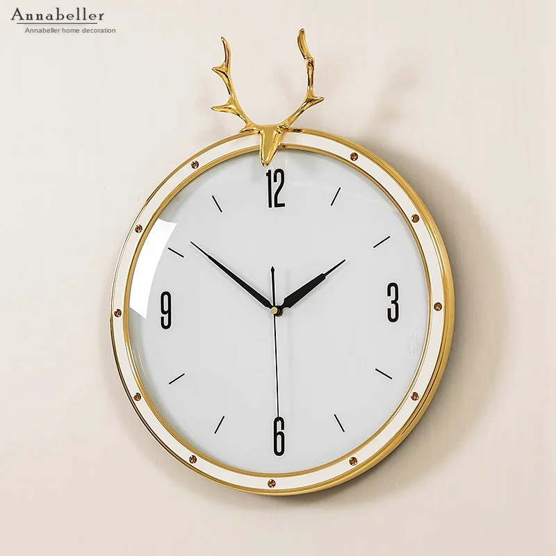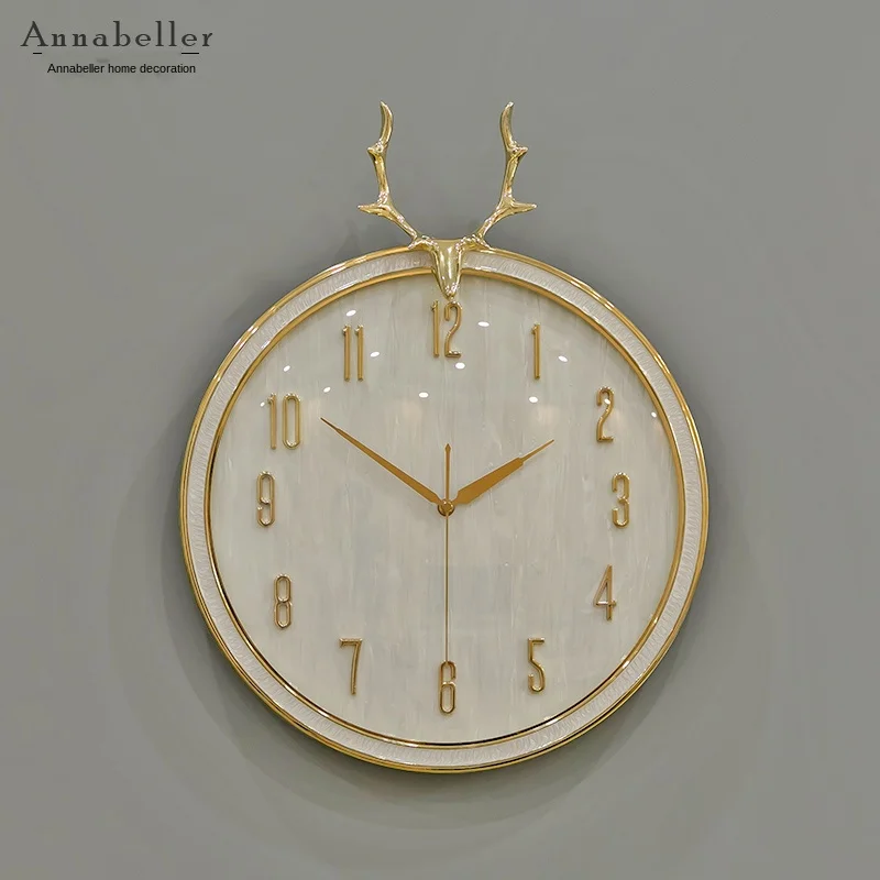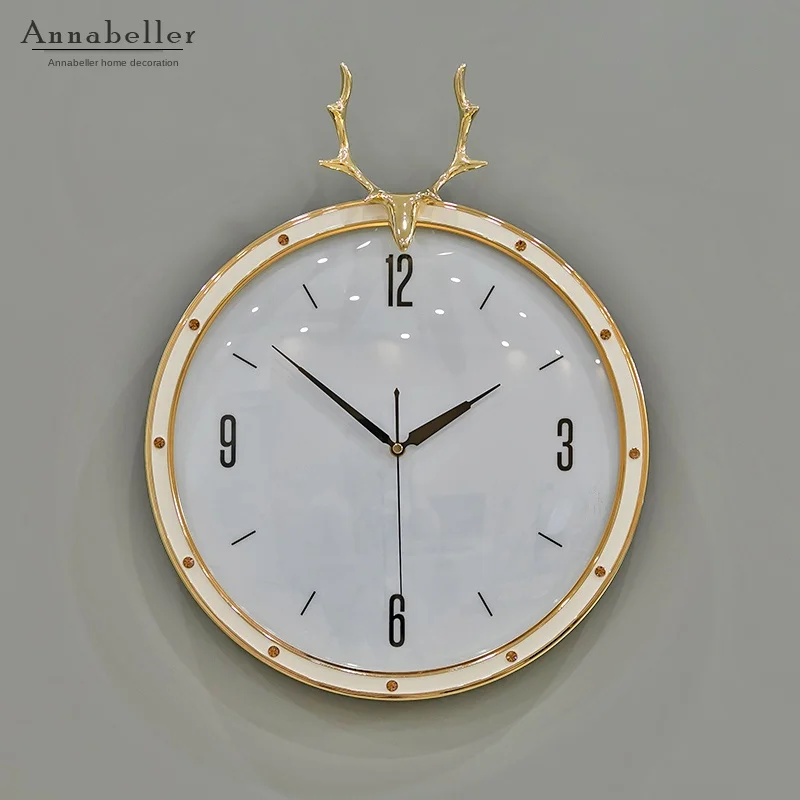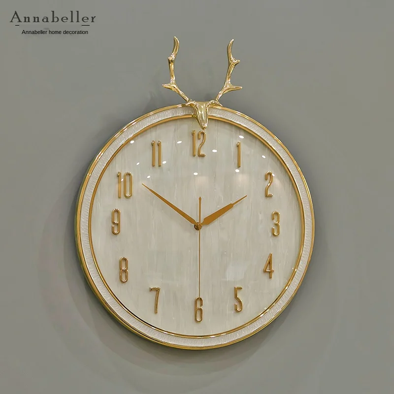 Роскошные современные большие настенные часы 3d Металлические медные голова оленя креативные часы настенные часы домашний декор Horloge настенная гостиная SC195