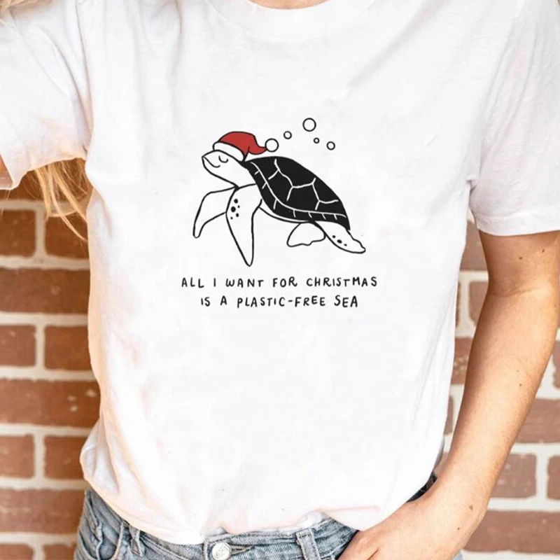 Все, что я хочу на Рождество, это пластиковая свободная морская футболка, женская уличная Эстетическая футболка Kawaii, топы для девочек Ulzzang, Прямая поставка