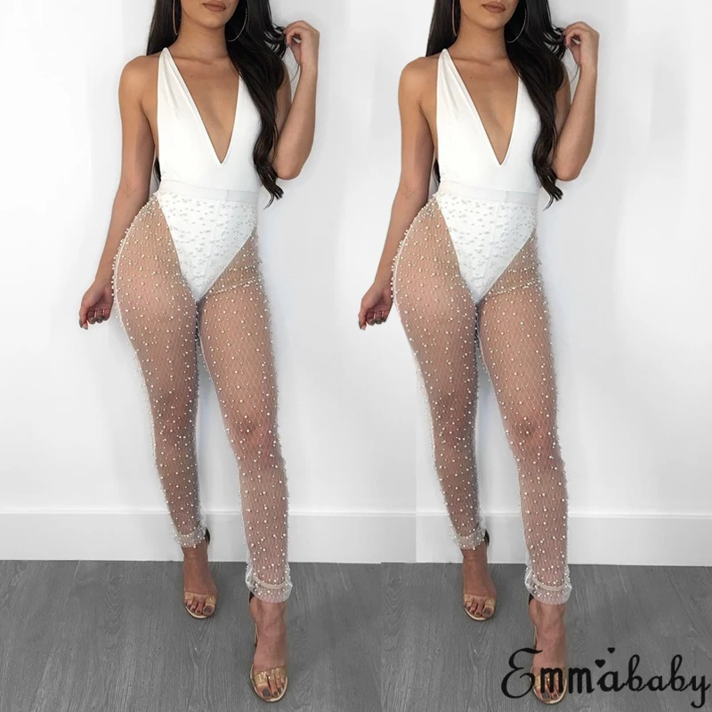 Hirigin женские брюки с жемчужной сеткой, прозрачные однотонные белые черные длинные брюки, лидер продаж, 2 цвета, Optioanl!