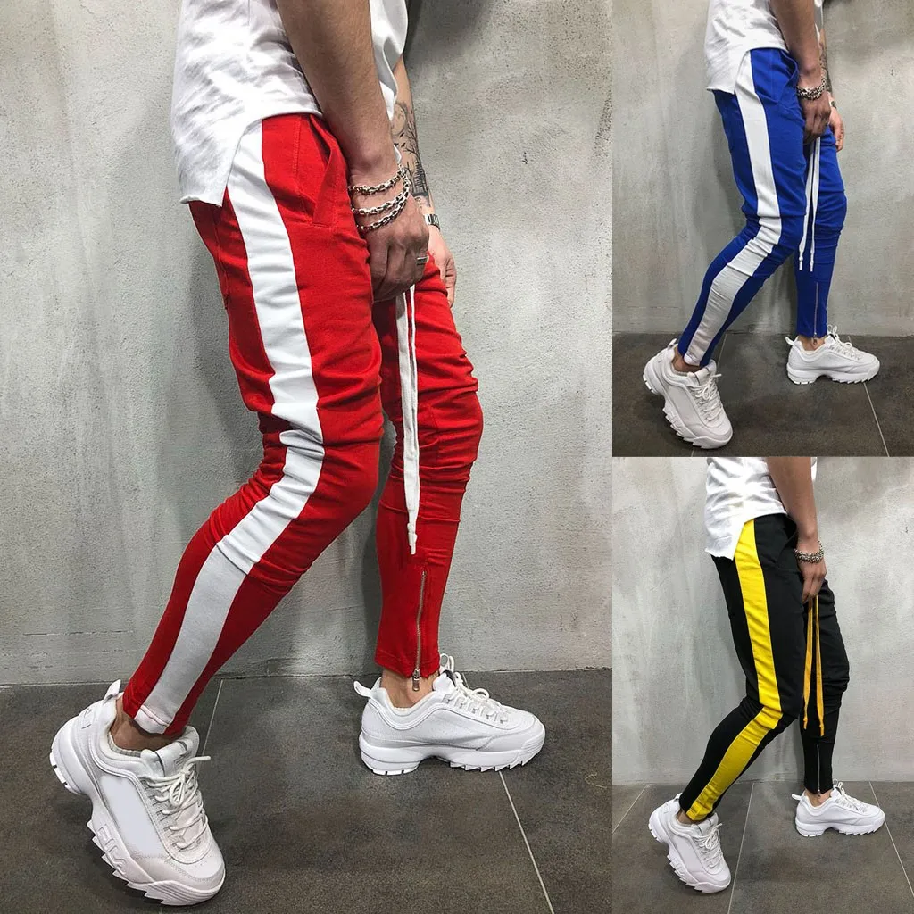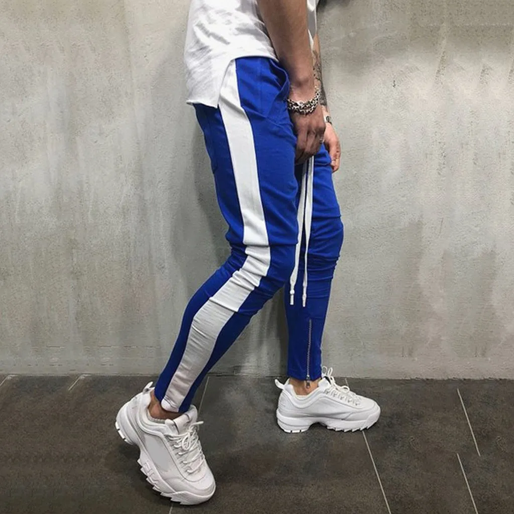 Мужские спортивные штаны повседневные эластичные спортивные полосатые мешковатые с карманами брюки