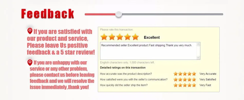 3. Свяжитесь с нами, прежде чем оставлять отрицательный или нейтральный отзывы (1-3 звезды). Мы будем работать с вами, чтобы решить любую проблему. Спасибо за понимание. ![]()
