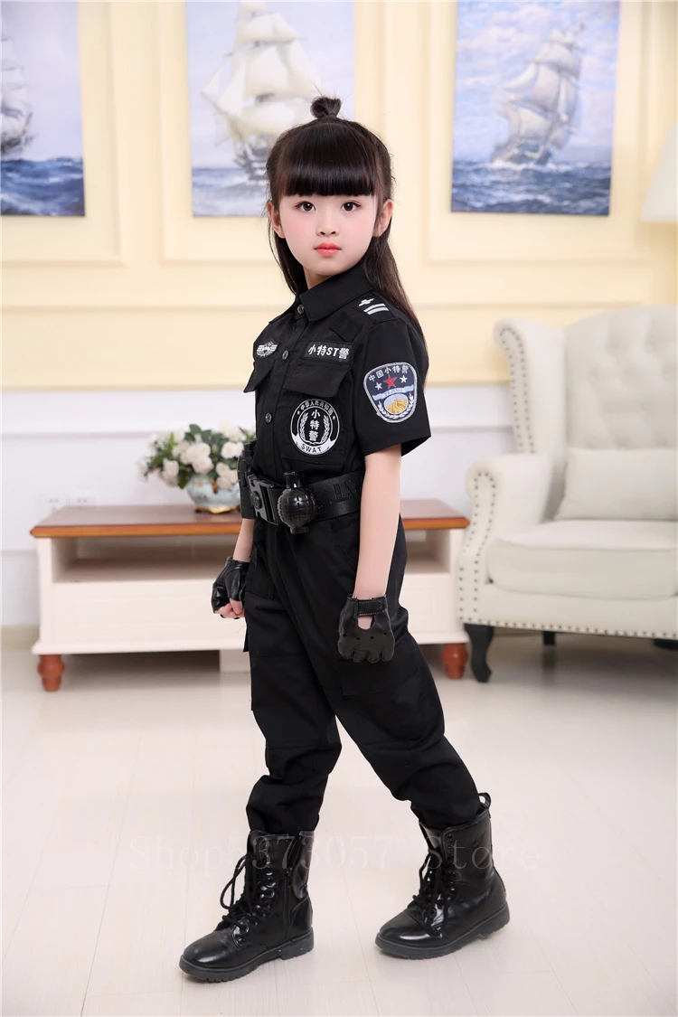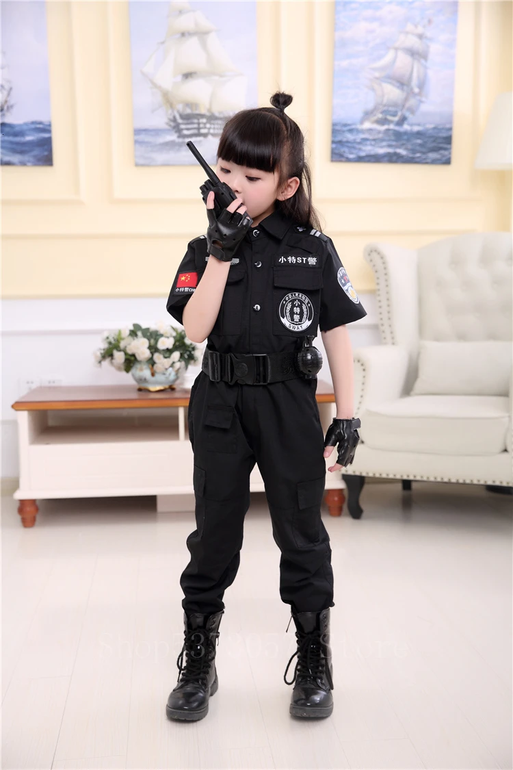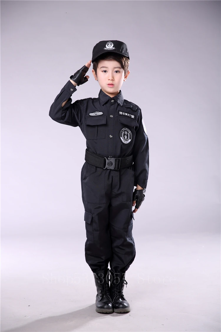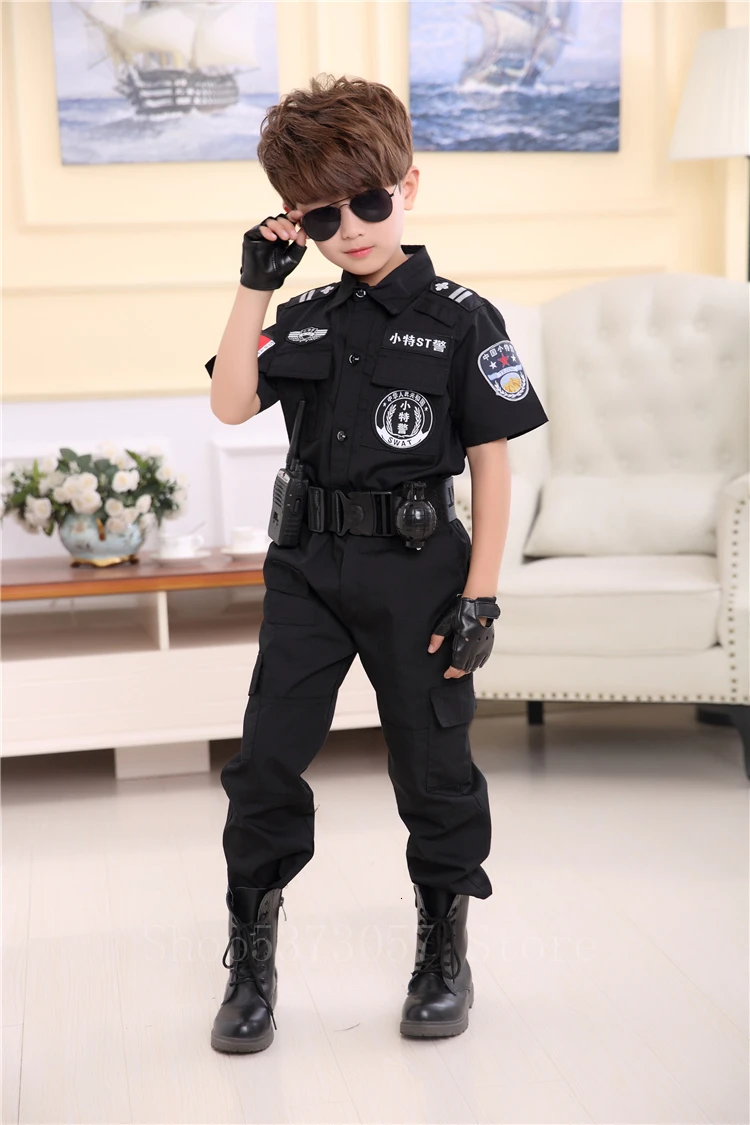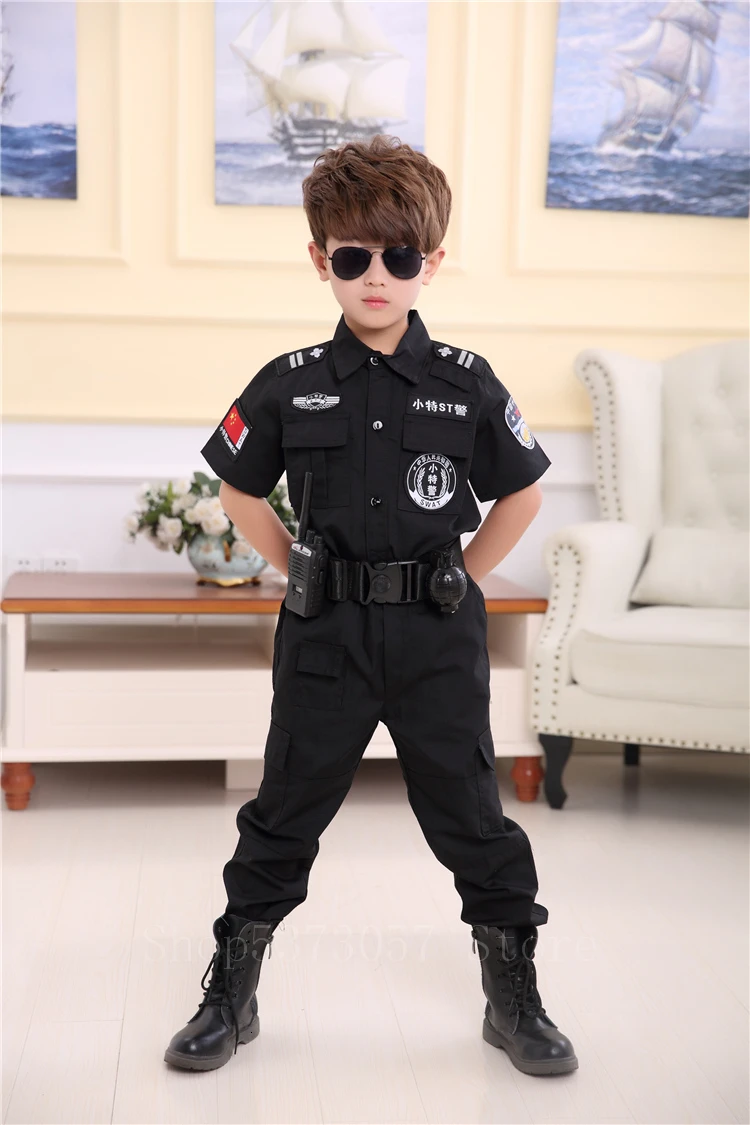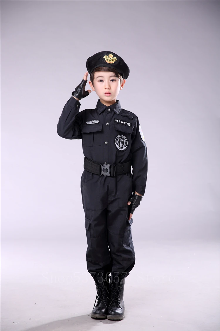 Детская необычная полицейская униформа для Хэллоуина, косплей, вечеринка, полиция, женские костюмы, короткий костюм, карнавальный костюм для мальчиков, Подарочный комплект одежды
