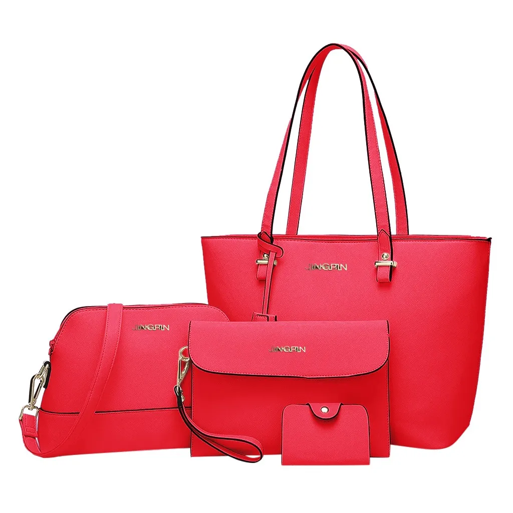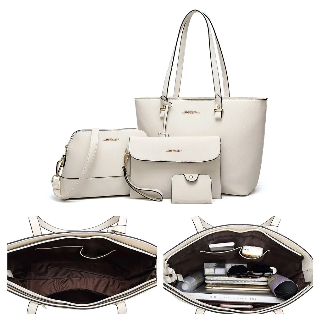 Женские модные сумки, кожаная сумка на плечо, кошелек, сумка для карт, сумка-тоут, набор 4