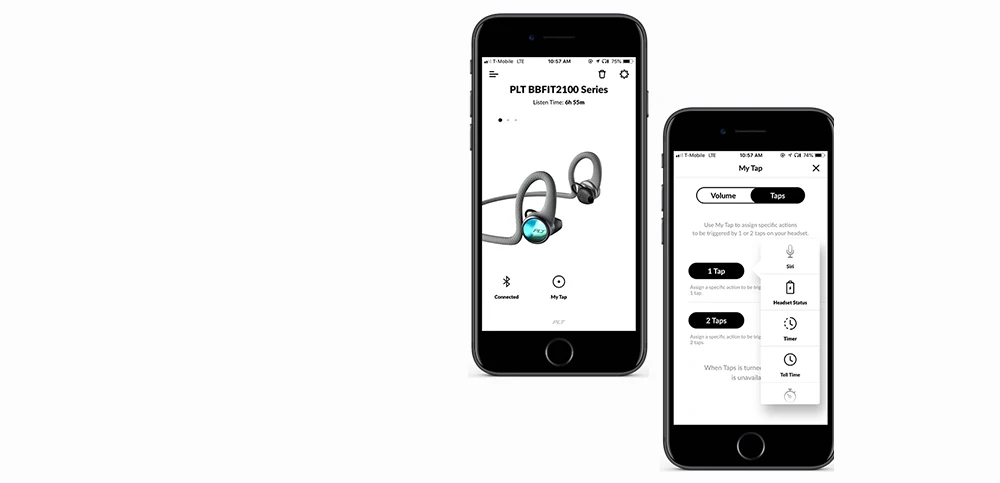 Теперь вам не нужно приостанавливать тренировки, чтобы изменить ситуацию. Доступна через приложение BackBeat, функция My Tap предлагает настройки команд для индивидуального опыта тренировки. С помощью одного или двух нажатий и без перерыва в действии, вы можете запустить секундомер, установить таймер или выбрать свой любимый плейлист прямо из наушников.