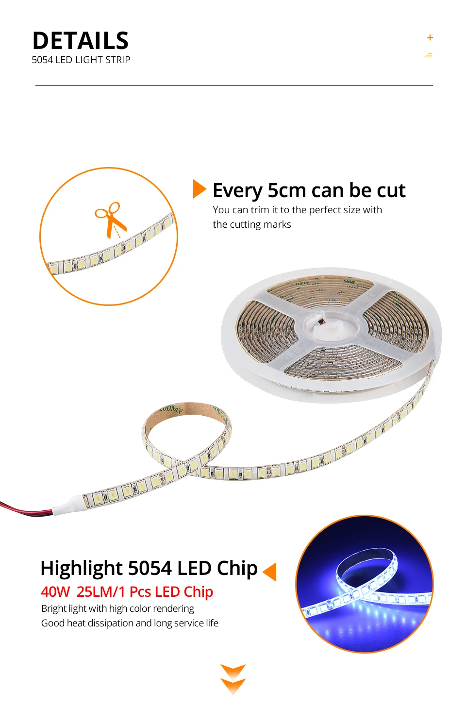 Светодиодный светильник, Светодиодная лента, 12 В, 5 м, 600 светодиодов, 5054, IP33, IP67, IP68 водонепроницаемый, белый, теплый белый