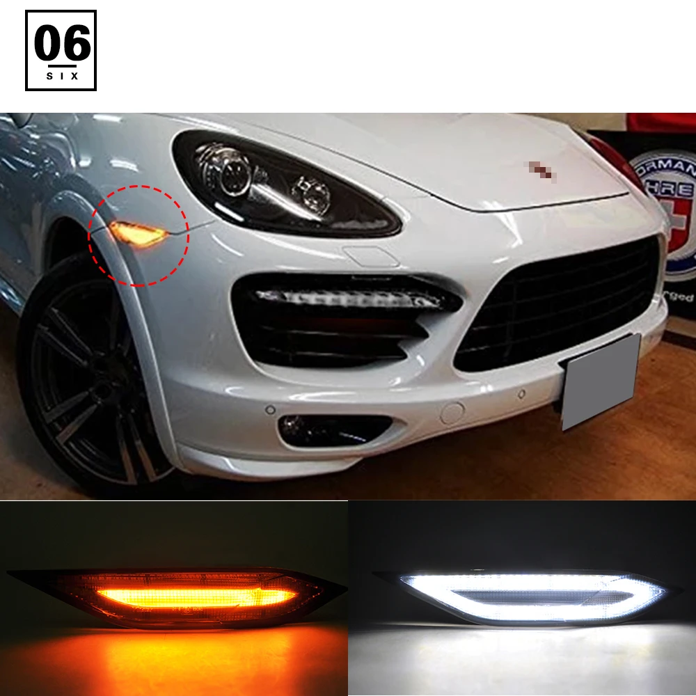 Для Porsche 958 Cayenne 2011-2014 Копченый светодиодный, боковой, габаритный фонарь, сигнальная лампа поворота (янтарный), светодиодный ходовой свет/габаритный фонарь (белый)