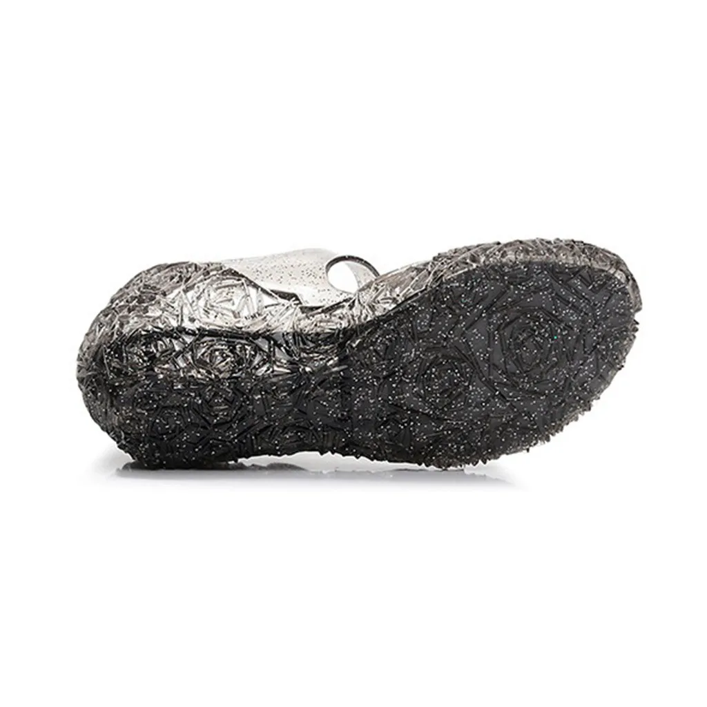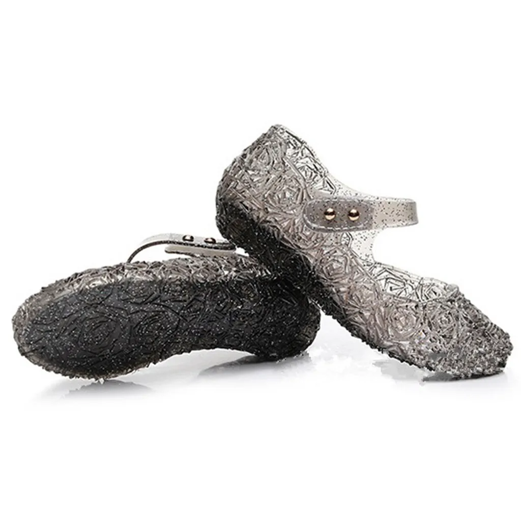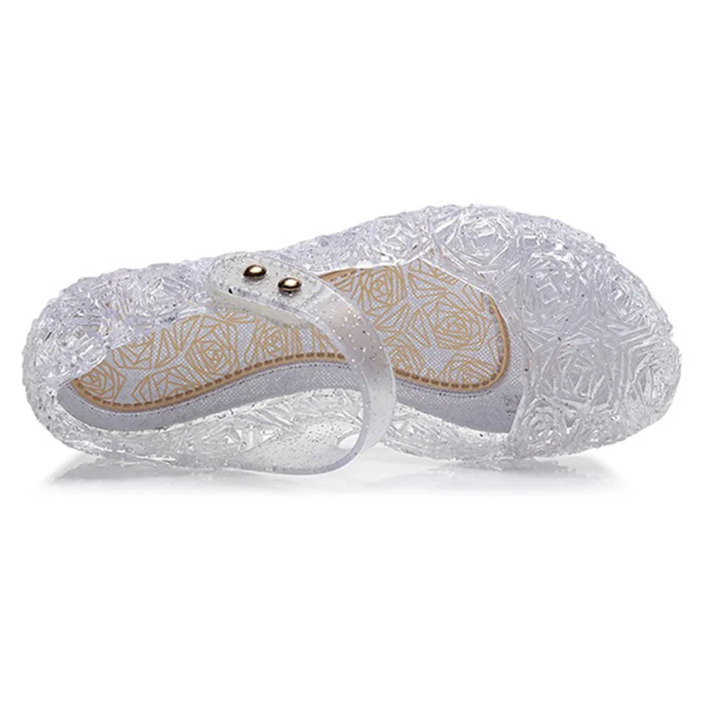 Сандалии принцессы на танкетке для маленьких девочек; прозрачная обувь для танцевальной вечеринки и костюмированной вечеринки