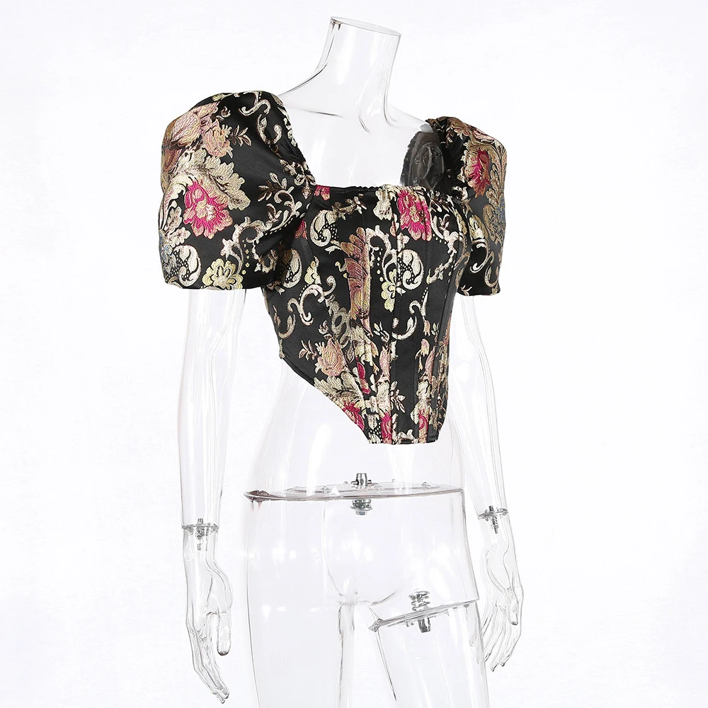 Женская облегающая футболка с цветочной вышивкой, тройники, укороченные топы, сексуальные женские тонкие футболки с пышными рукавами, Femme Basic Blusa Mujer, футболка, топ