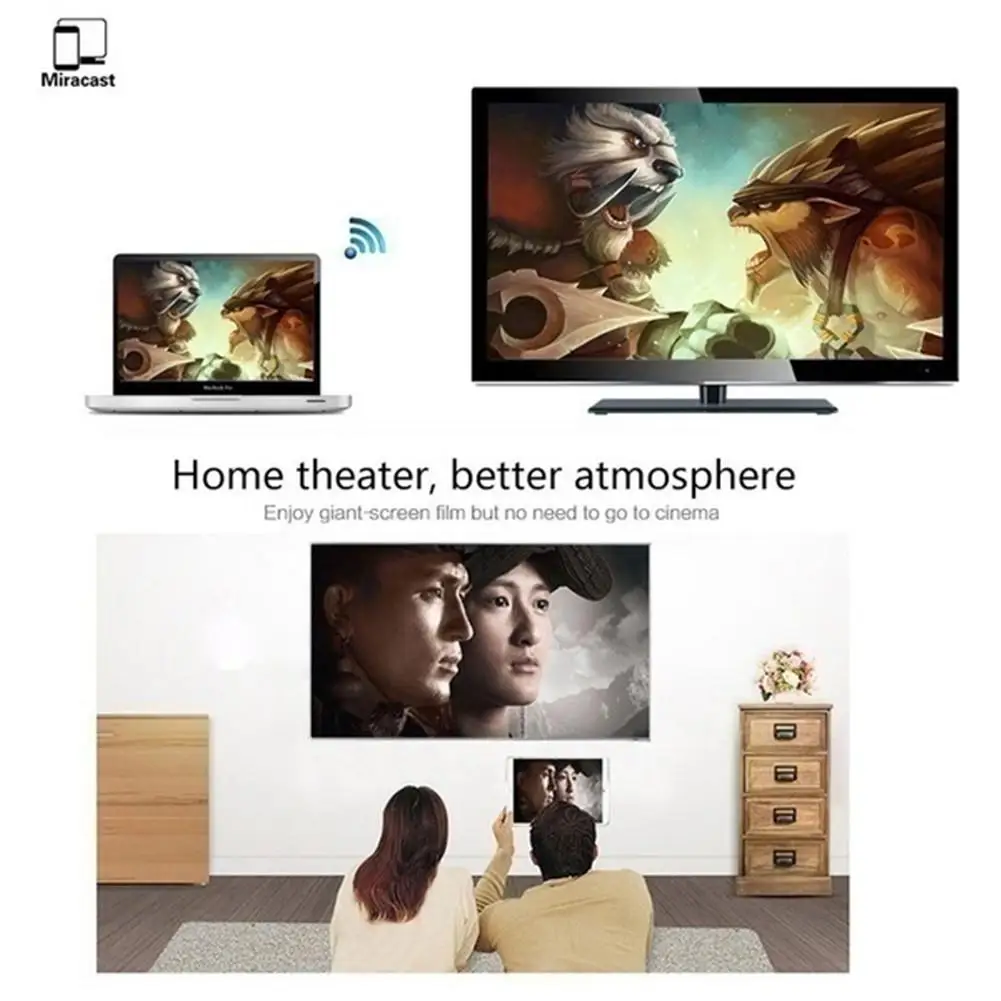 1. Беспроводной дисплей: подключается к Wi-Fi, используйте Miracast, DLNA и AirPlay Для зеркального отображения всего экрана вашего смартфона/планшета/ПК на другой дисплей с большим экраном (например, HDTV, монитор и проектор) С интерфейсом HDMI. Превосходно Наслаждайтесь экраном: смотрите фильмы, Играйте в игры и создавайте собственные эксклюзивные фильмы.