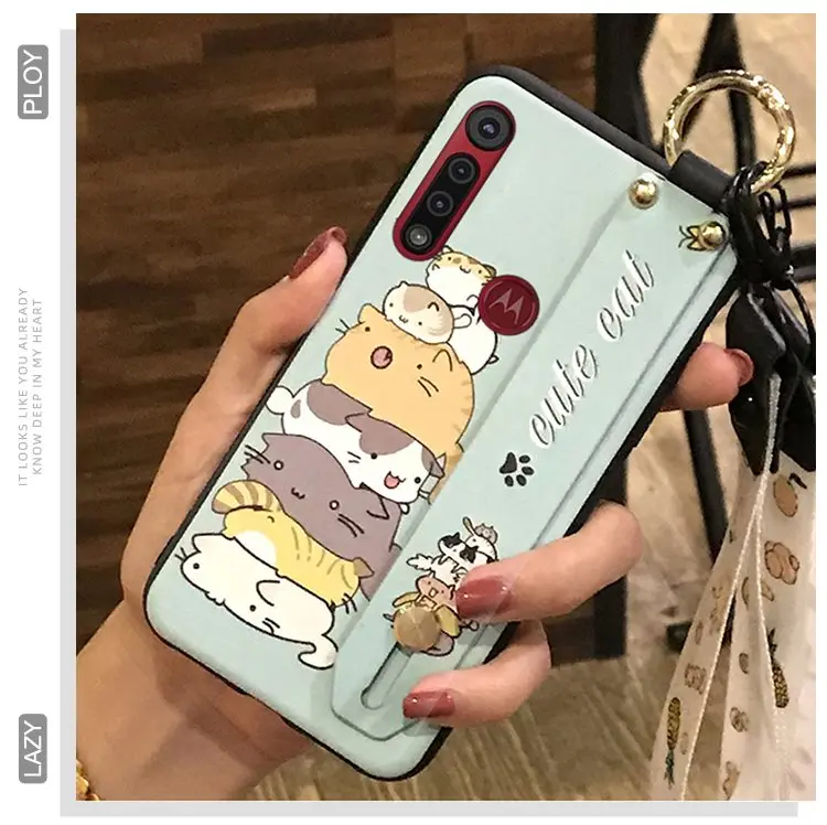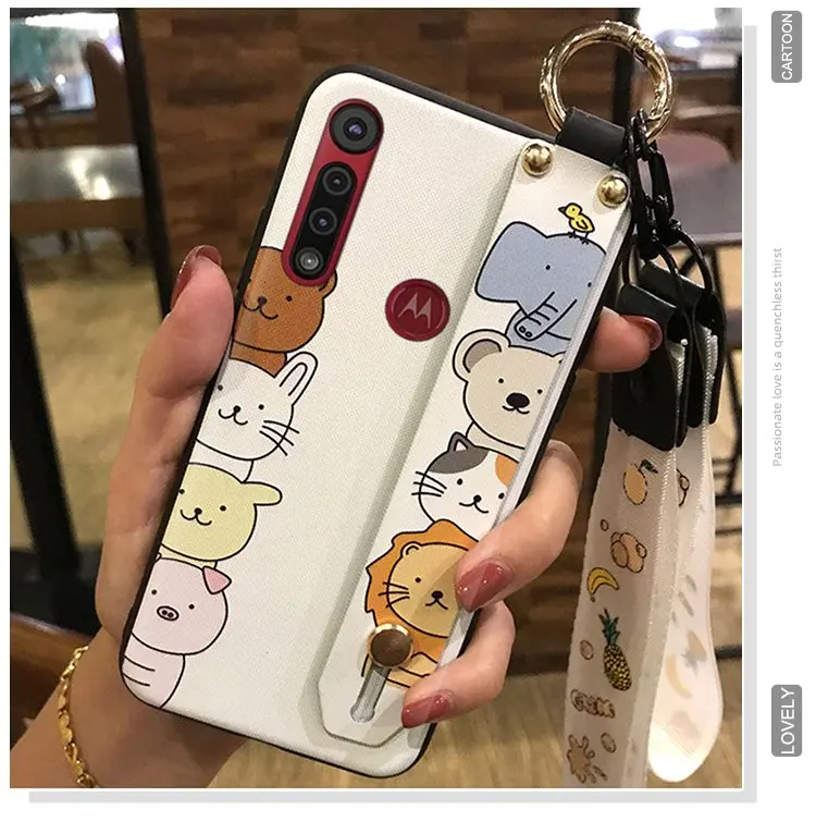 Грязеотталкивающий чехол для телефона с ремешком для MOTO G8 Play, силиконовый чехол с мультяшным рисунком, нежная окраска, противоударный модный дизайн