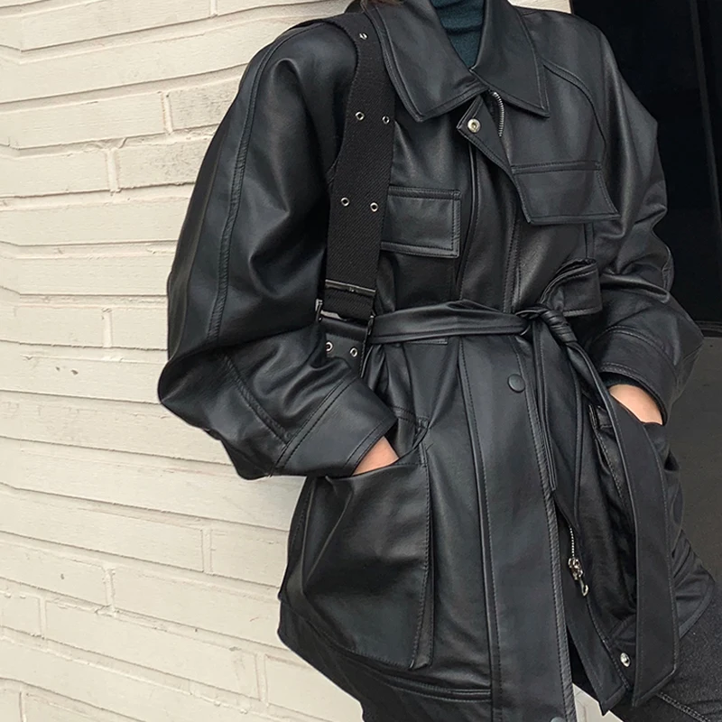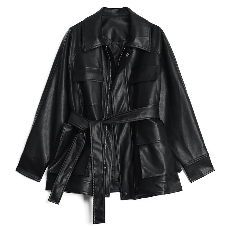 Куртка женская короткая из ПУ кожи на осень|Кожаные куртки| |