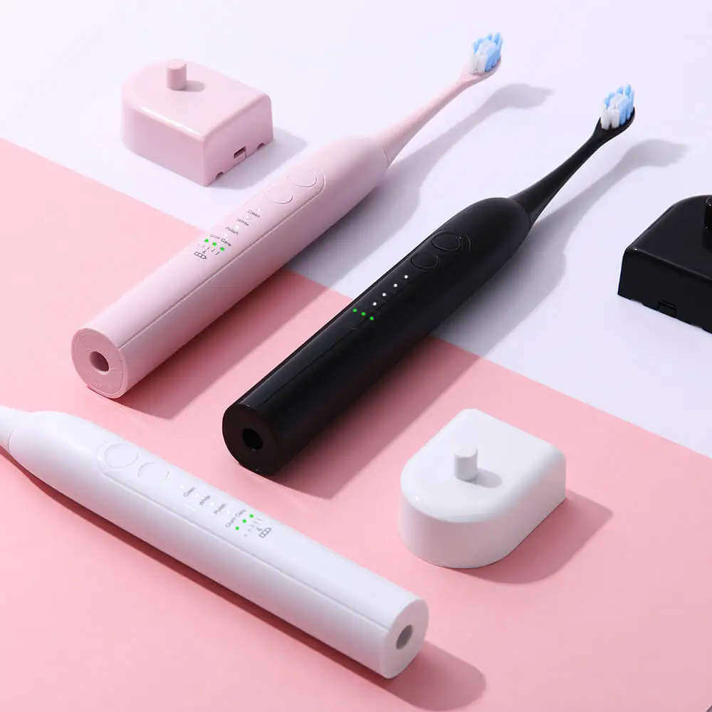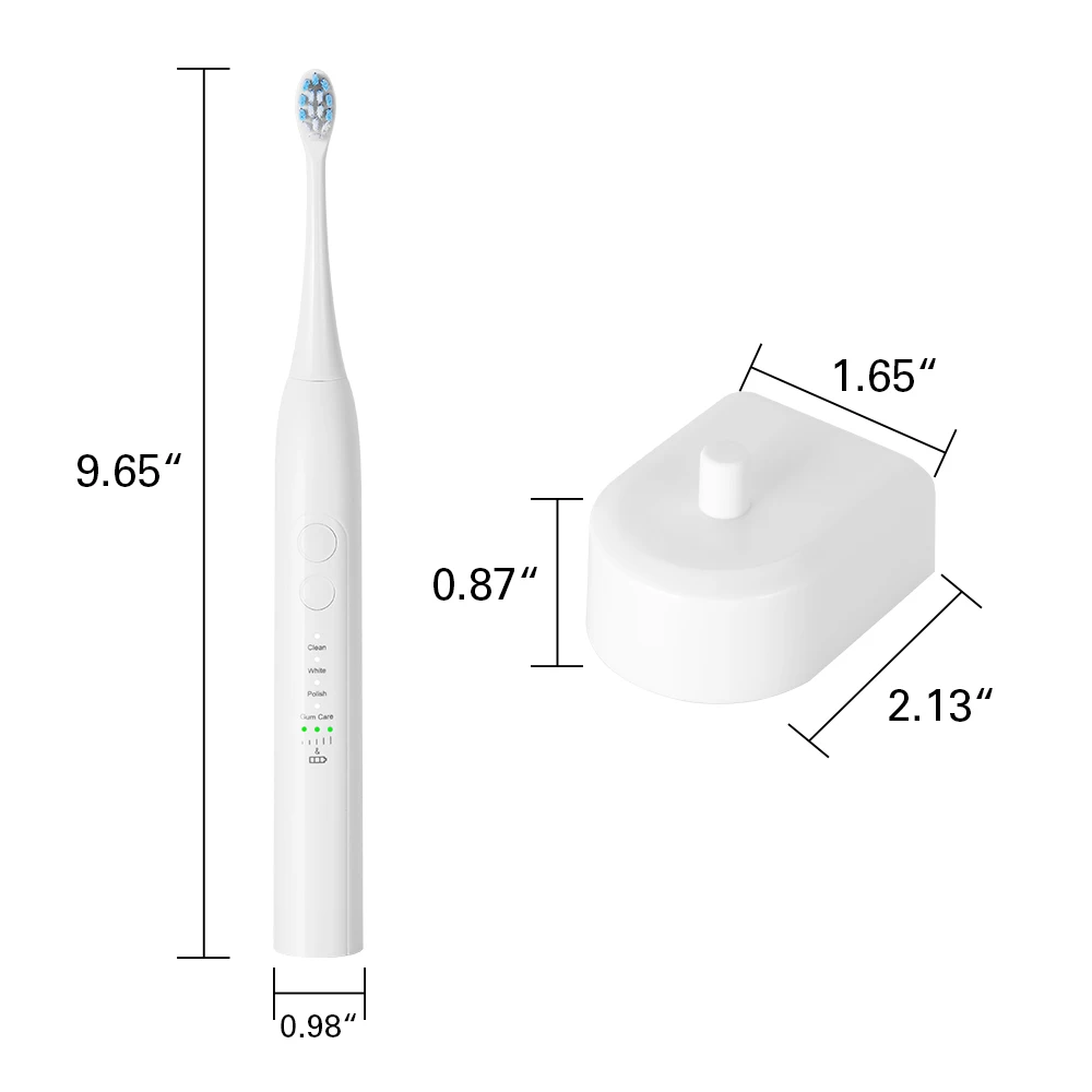 5. Водонепроницаемость IPX7: Бесшовный корпус, Индуктивная зарядка, лучший водонепроницаемый эффект. Может выдерживать очистку воды, однако для более длительного срока службы и безопасности этой электрической зубной щетки рекомендуется не заваривать в воде в течение длительного времени.